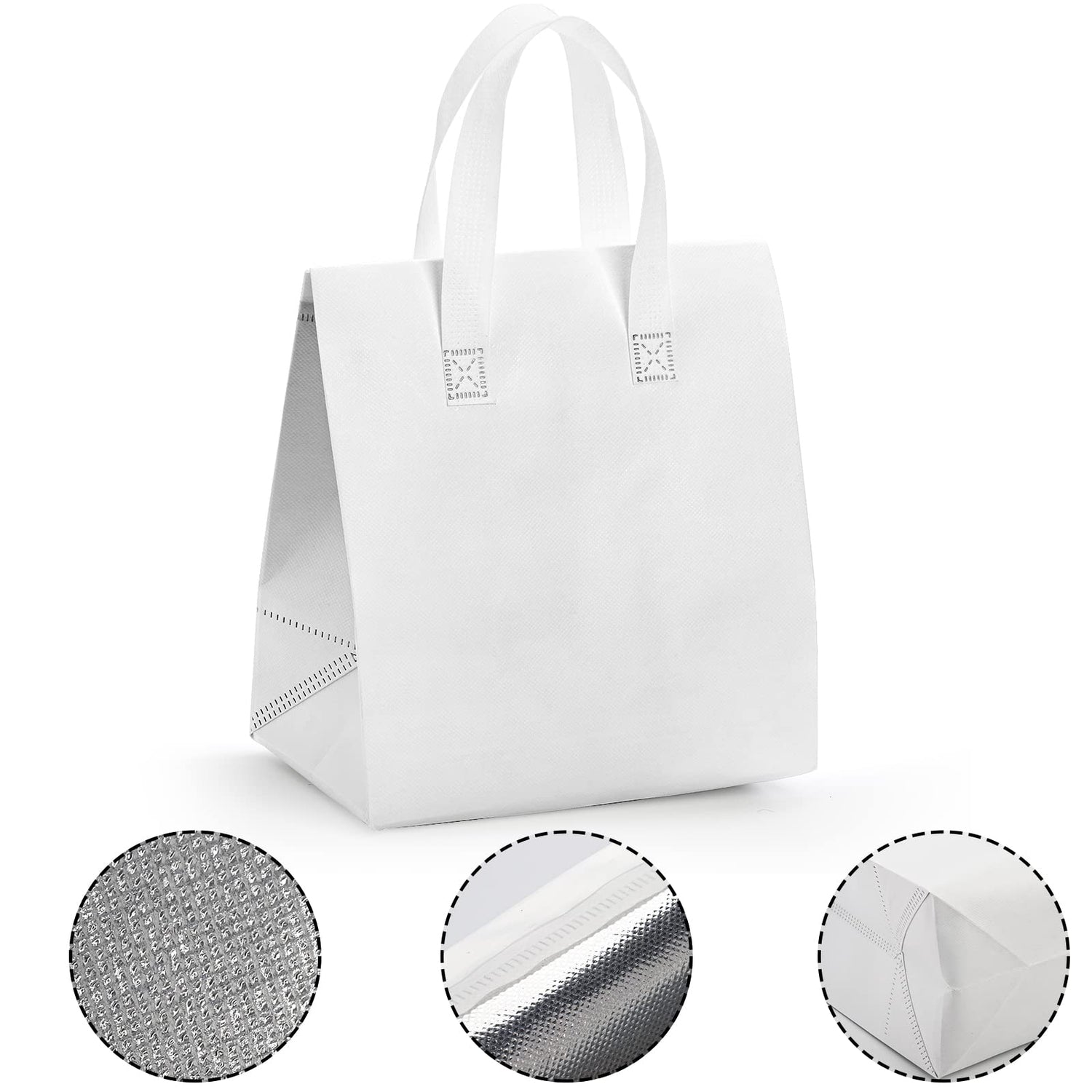ZENFUN Set of 25 Insulated Take Away Bags, Small Insulated Cooler Bag Grocery Bags, White Thermal Bags for Hot&cold Frozen Food, Food Delivery, 9.5 x 6 x 10 Inches