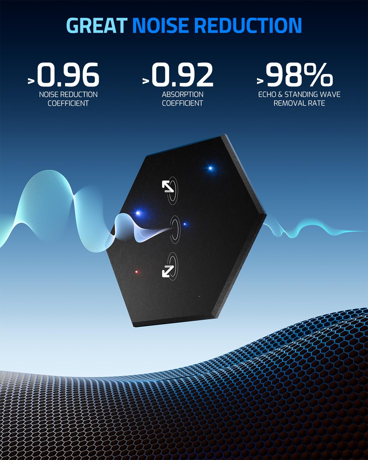 ZenSonic 12 Pack Self-adhesive Sound Proof Foam Panels for Walls 12" X 10" X 0.4" - Hexagon Acoustic Panels with Fiber Optic Starlight, Stylish Soundproof Wall Panels Absorb Noise and Wall Decor Black