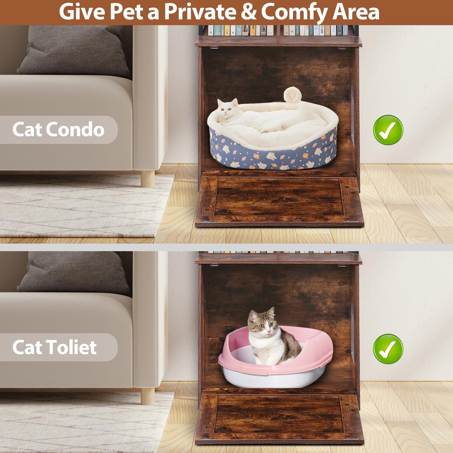 ZENY 2-in-1 Cat Litter Box Enclosure with Storage Shelves, Hidden Cat Litter Box Enclosure Furniture with Entrance (Rustic Brown)