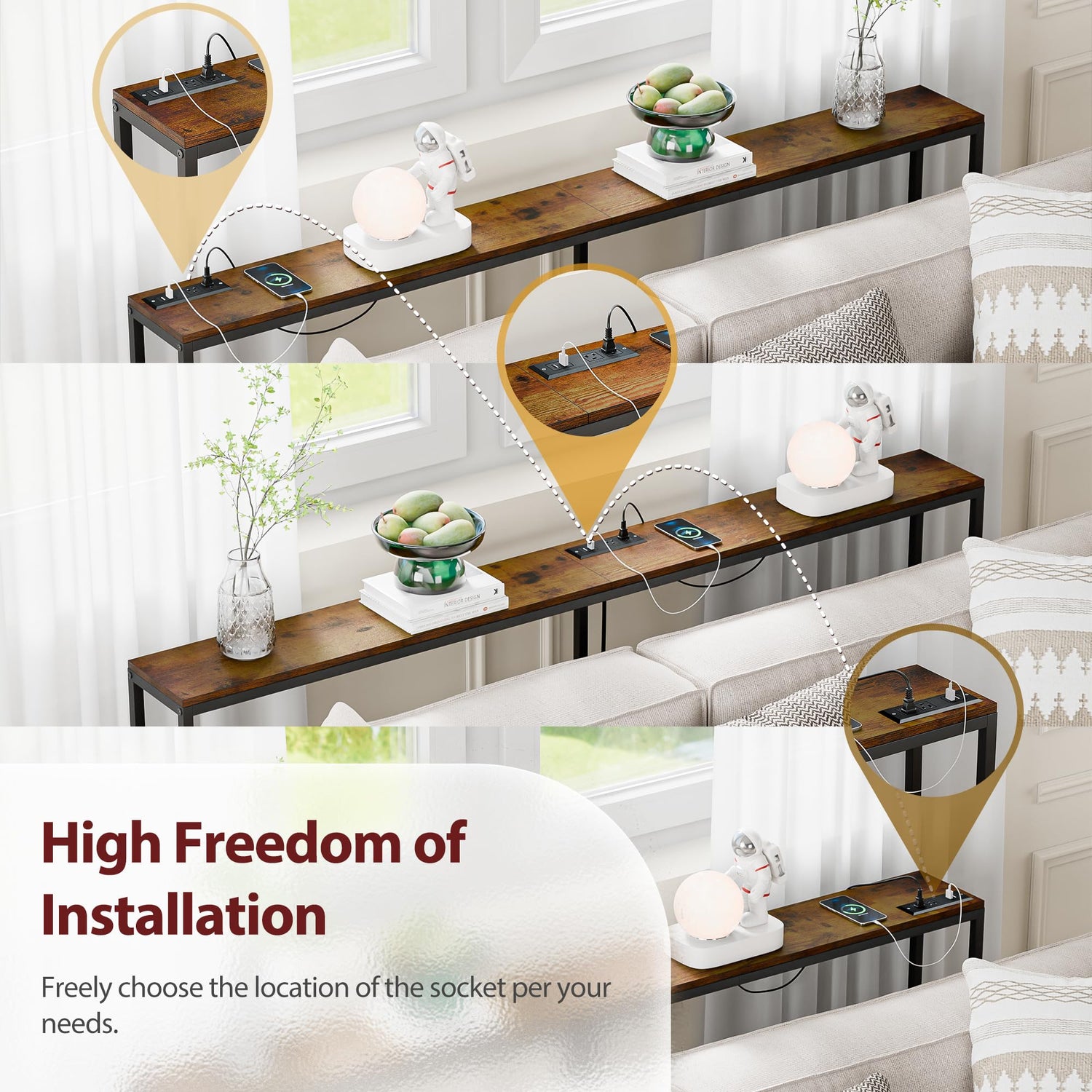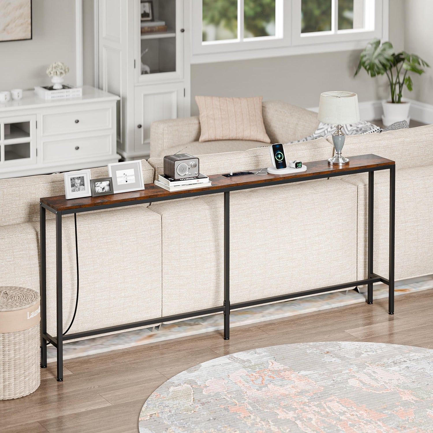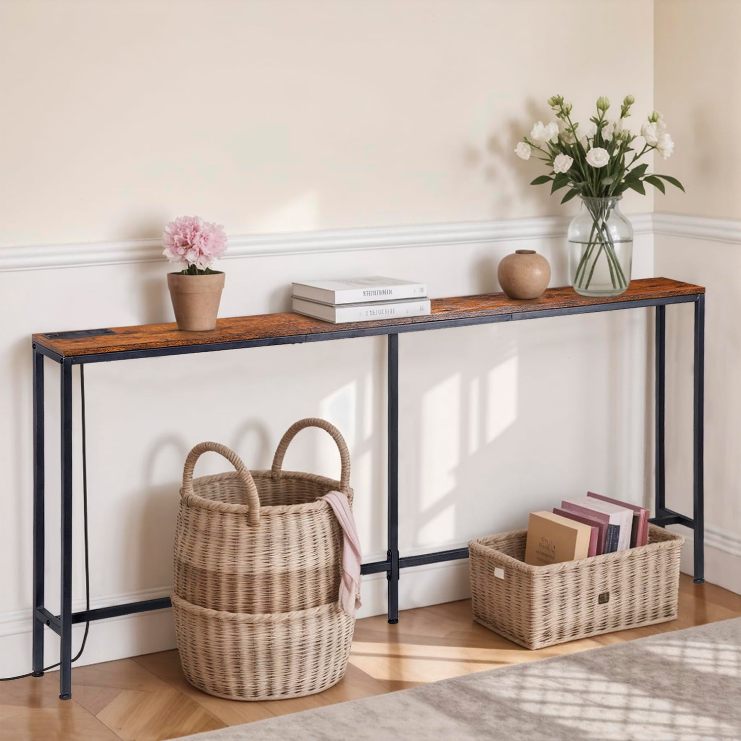 ZENY 70 Inch Console Table with Outlet, Narrow Sofa Table with Charging Station, Long Entryway Table, Hallway Table, Behind Couch Table for Living Room, Entryway, Foyer, Rustic Brown