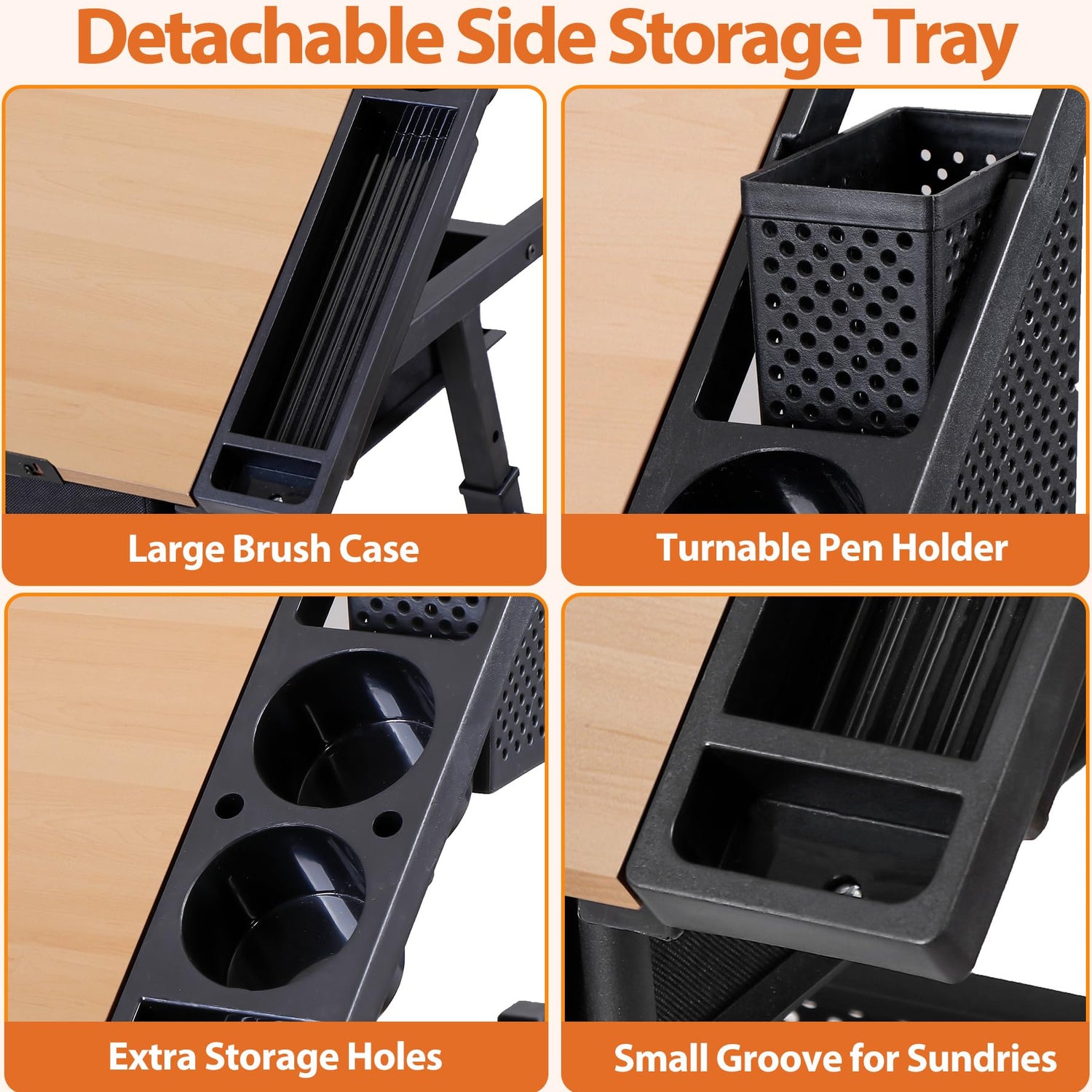 - Large Storage Space: The painting table have 2 slide-out drawers and a storage shelf under the main table to store papers, drafting tools and other stuff. There is a pencil box on the right hand side. When the desktop is tilted, the Pencil Ledge on the table can ensure the pencil and drawing paper do not fall