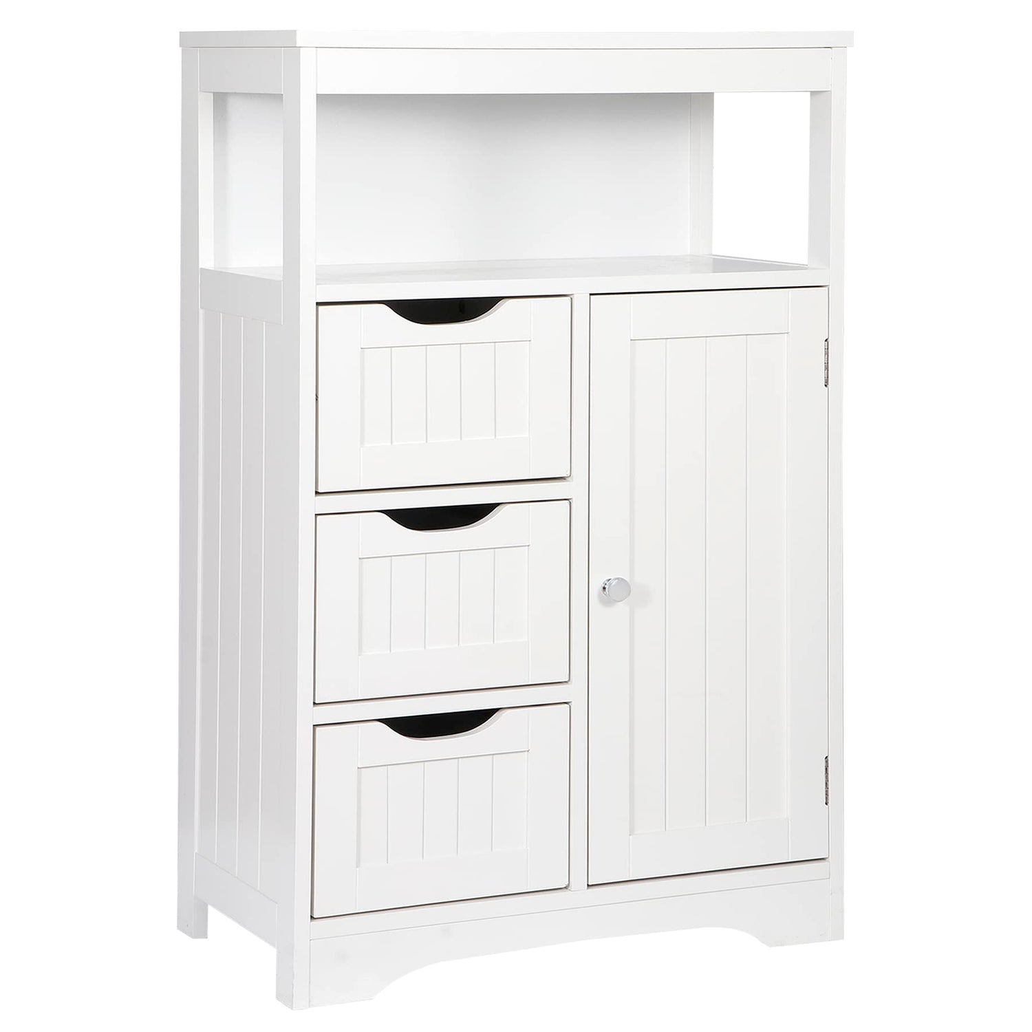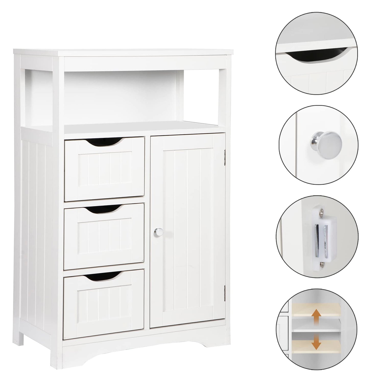 ZENY Modern White Wooden Bathroom Floor Cabinet with Adjustable Shelves and 3 Drawers