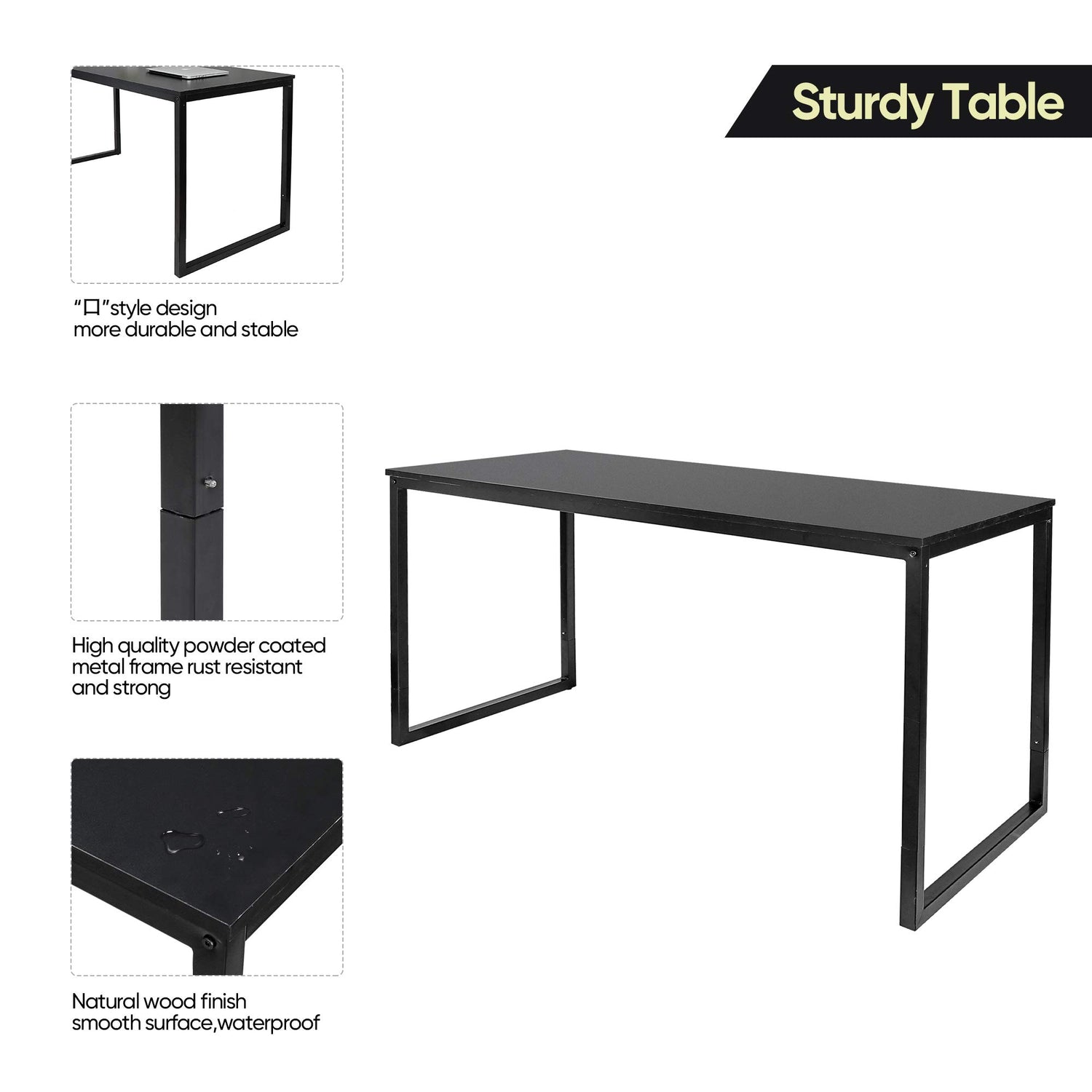 - LARGE WORK SPACE - This work desk features nice finish black wooden tabletop, smooth desk surface anti-scratched easy to clean,waterproof.55’’x23.6’’(LxW) desk surface,spacious work space for computer work writing work