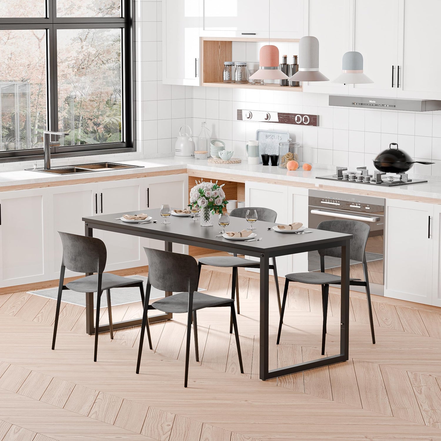 - EASY TO ASSEMBLE - Super easy to setup.just connect the legs and tabletop with screws.Take extra time to verify every bolt has been hand-tightened to avoid shaking.Adjustable leg pads provided for stability even on uneven floor and prevent from scratching floor.