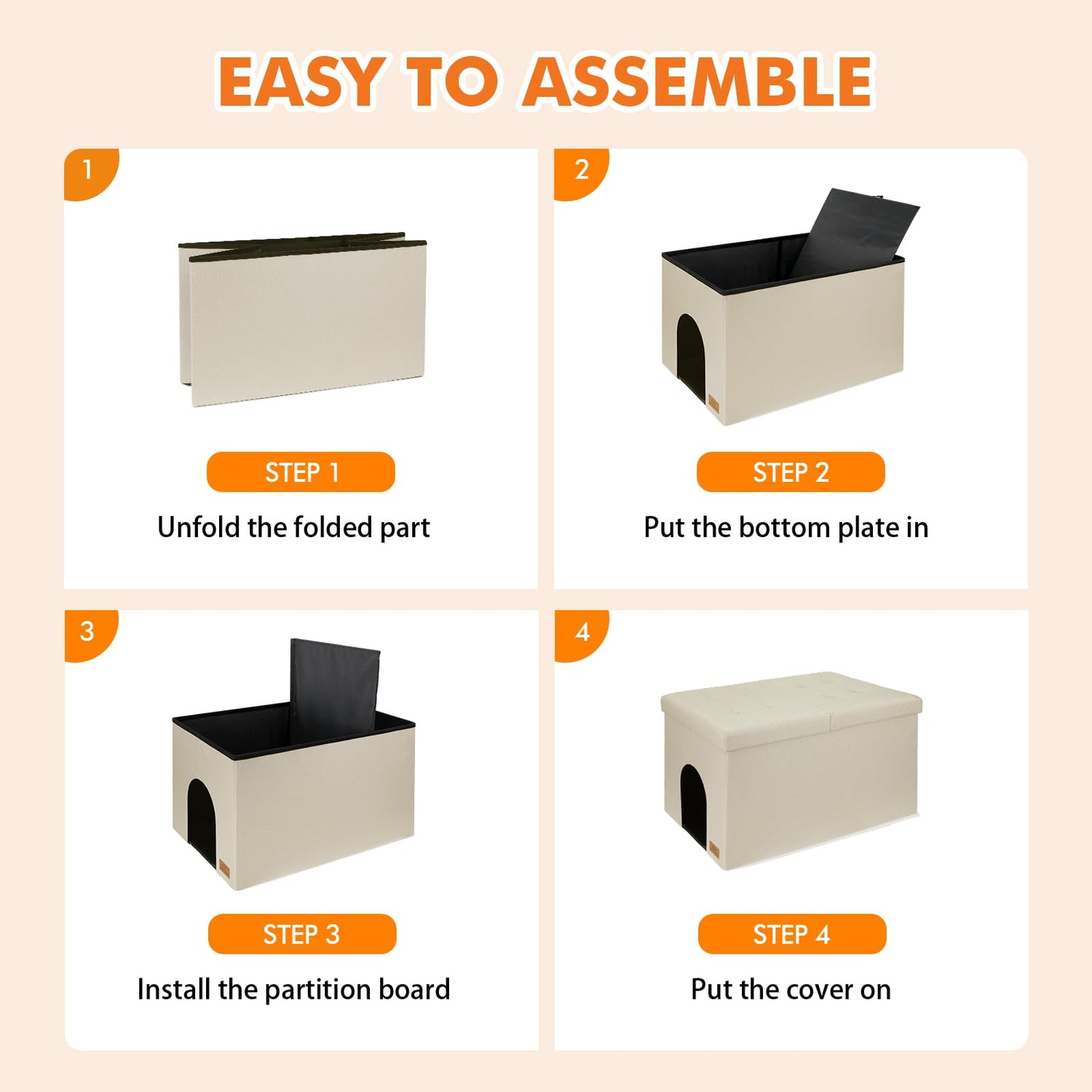 - 【Easy to Assemble and Really Sturdy】The hidden litter box enclosure furniture is a breeze to put together, taking just a few minutes. You can start using it right away by unfolding the cat litter box cabinet and popping on the lid. It can support a maximum weight of 200 lbs with its divider.