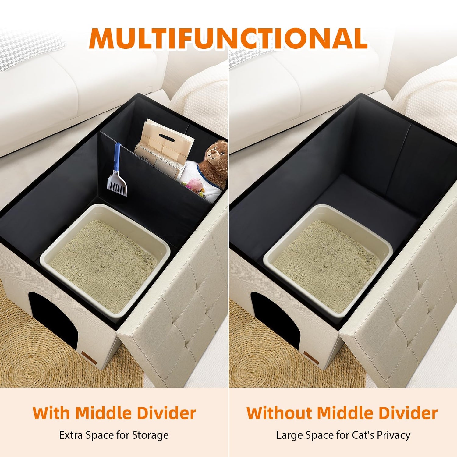 - 【Aesthetics Design】Not only is it a cat litter box enclosure, but it can also double as a cozy cat house. Plus, you can use this piece of furniture as a trendy ottoman or bench.