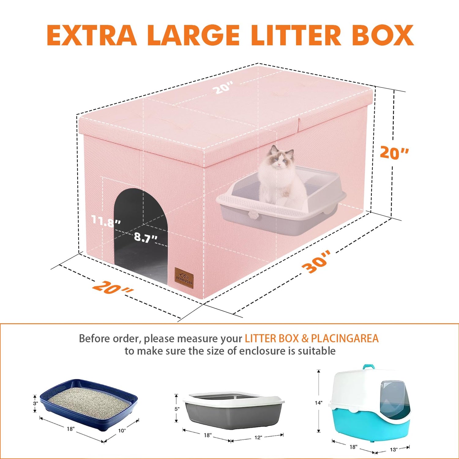- 【Extra Large Space Inside】Measuring 30"x20"x20", our cat litter box furniture ensures that the enclosure is spacious enough for your cat to comfortably enter, turn around, and dig in the litter without feeling cramped. All dimensions are measured manually, please allow a deviation of 1-2 inches.