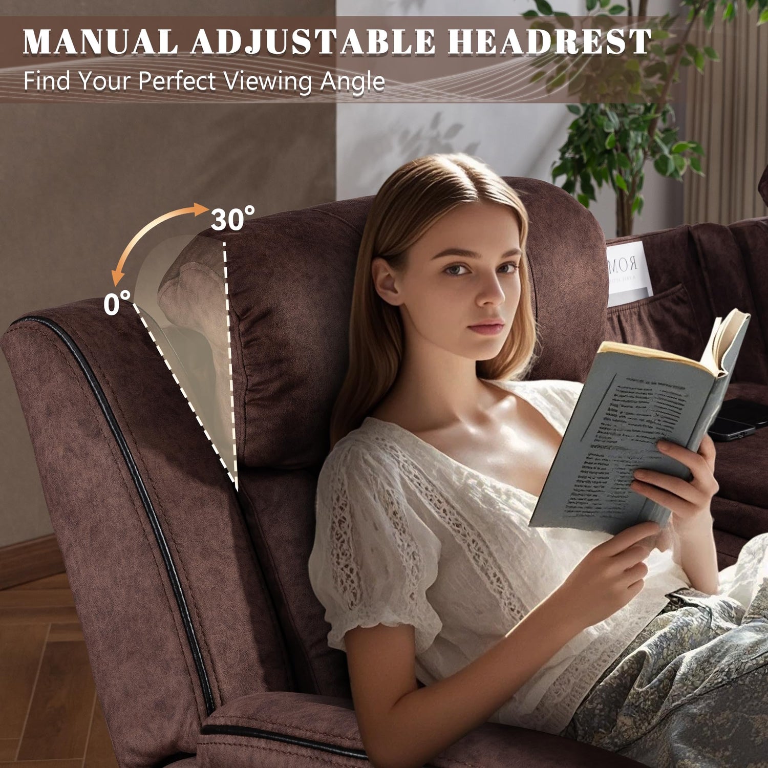 - Adjustable Headrests – Personalized Support: 3-level adjustable headrests let you find the perfect angle for watching TV, reading, or lounging. Combined with plush cushions and ergonomic armrests, this recliner sofa adapts to your comfort needs for all-day relaxation
