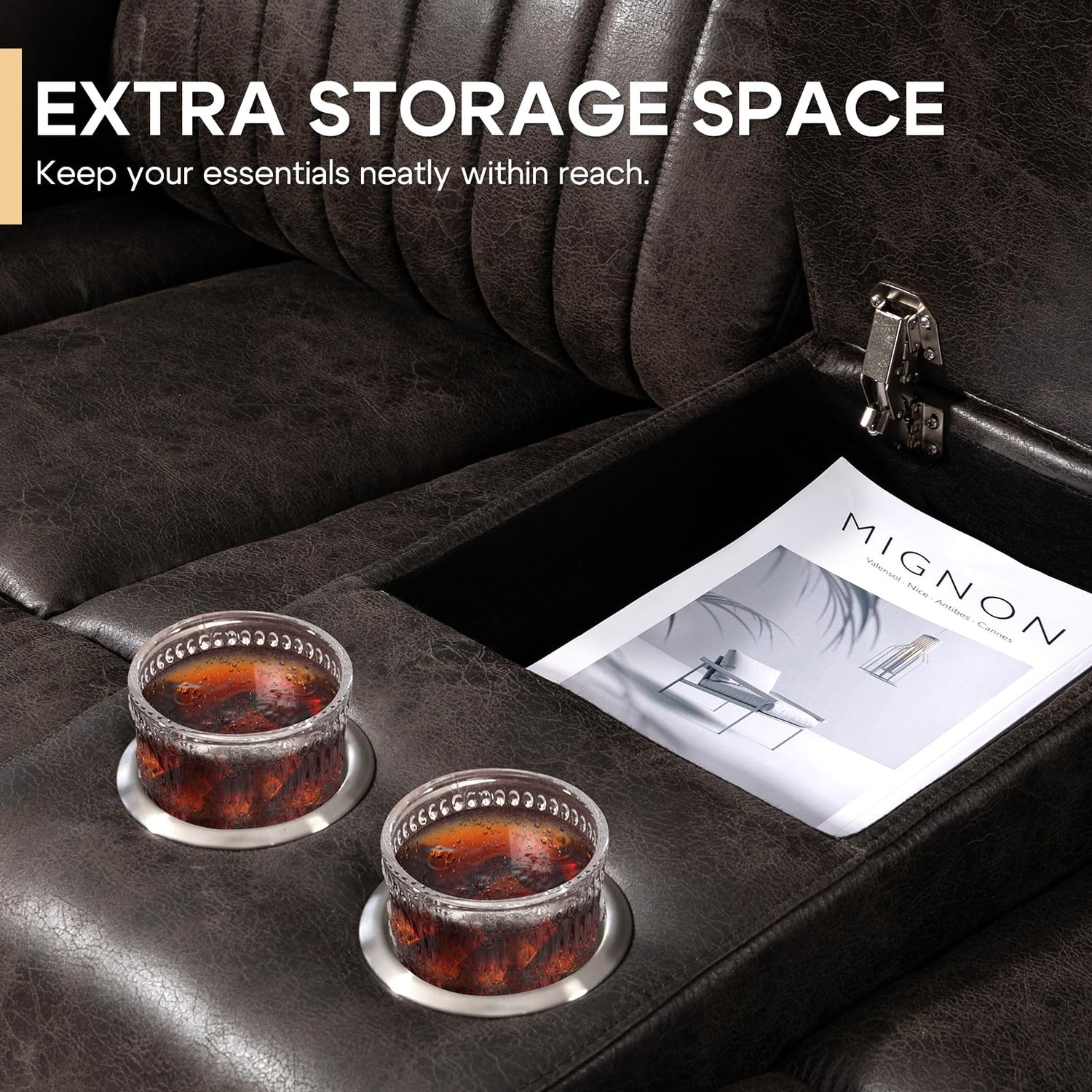 - Center Storage Console: Between the two seats, the loveseat features a multi-functional storage console with dual cup holders and a hidden space. Easily store remotes, magazines, or small items while keeping your favorite drinks within reach