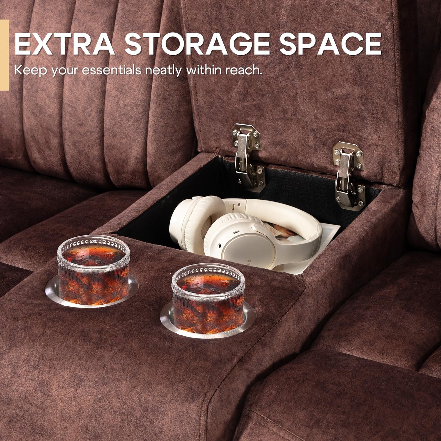 • Center Storage Console: Between the two seats, the loveseat features a multi-functional storage console with dual cup holders and a hidden space. Easily store remotes, magazines, or small items while keeping your favorite drinks within reach