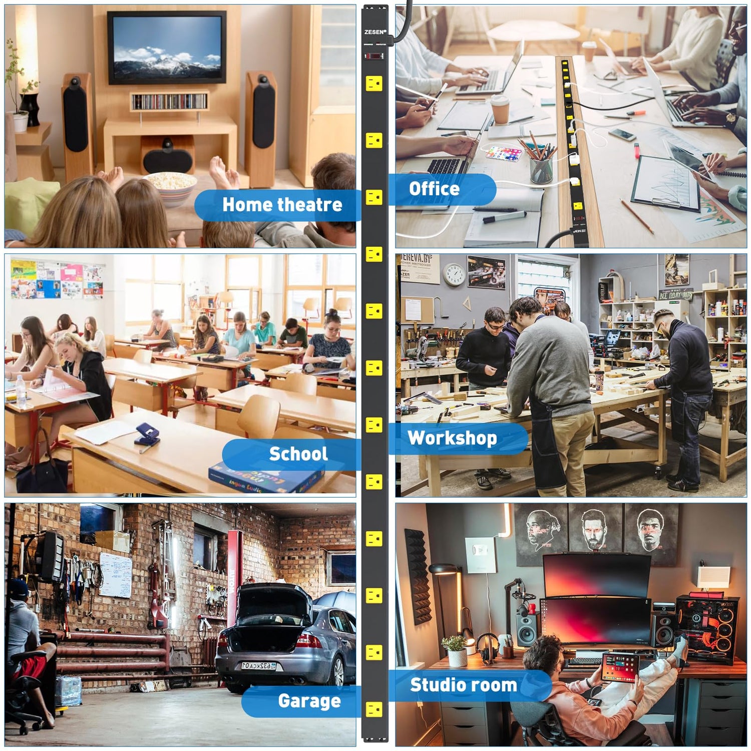 Details: ZESEN 12-Outlet Power Strips Heavy Duty Surge Protector Workshop Metal with 4ft Long Extension Cord, ETL Certified, Black