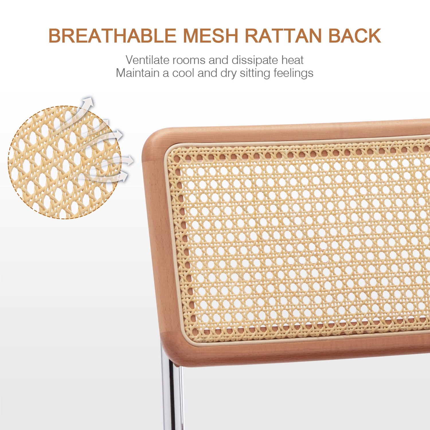- Material: Stained rattan in a red oak tone is artfully hand-woven to create this graceful backrest. It’s eye-catching to pair high glossiness and plumpness faux leather seat filled with high-density sponge, having the advantages of permeability and comfort. What anyone has to admit is that we ultimately impress you with its details and this distinctive home office chair is nearly perfect.