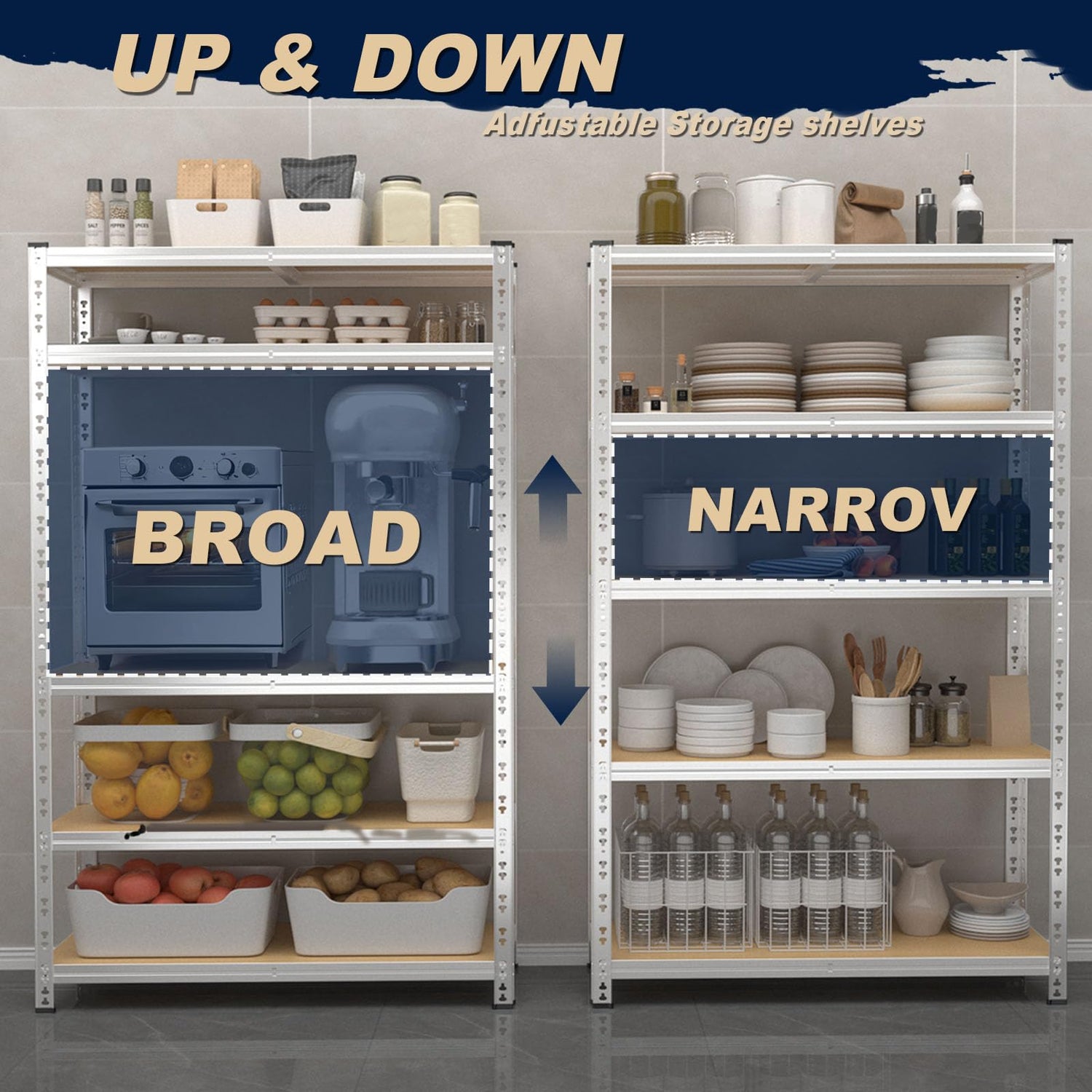- 【2200lbs Load Capacity】 Heavy duty shelters have a total load capacity of 2200 pounds, with each layer carrying 440 pounds. It can stably carry garage tools, supermarket products, and kitchen appliances.