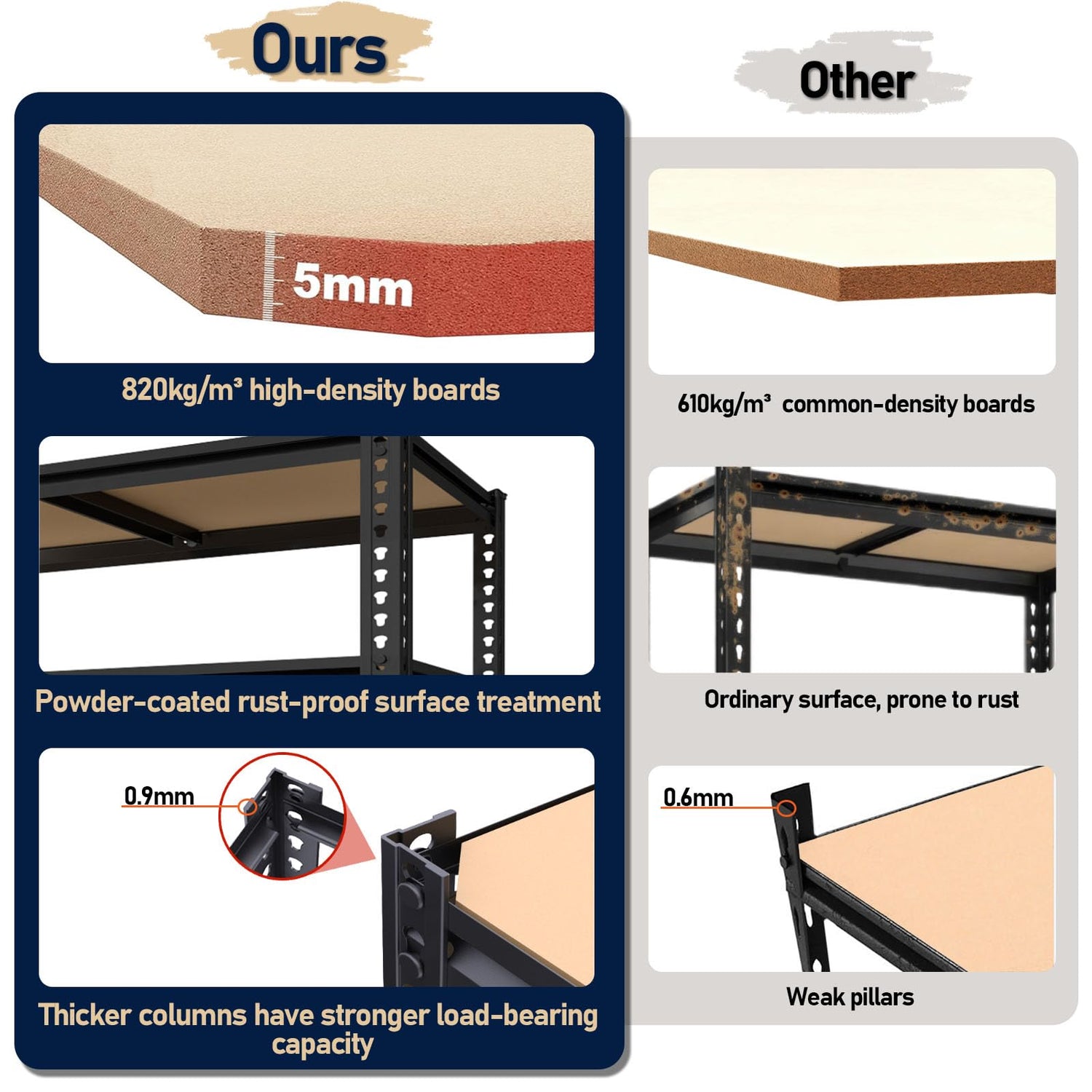 - 【820kg/m ³ High-density Board】 Shelf organizers use 820kg/m ³ high-density board, which has better load-bearing capacity and is less prone to warping or sinking.