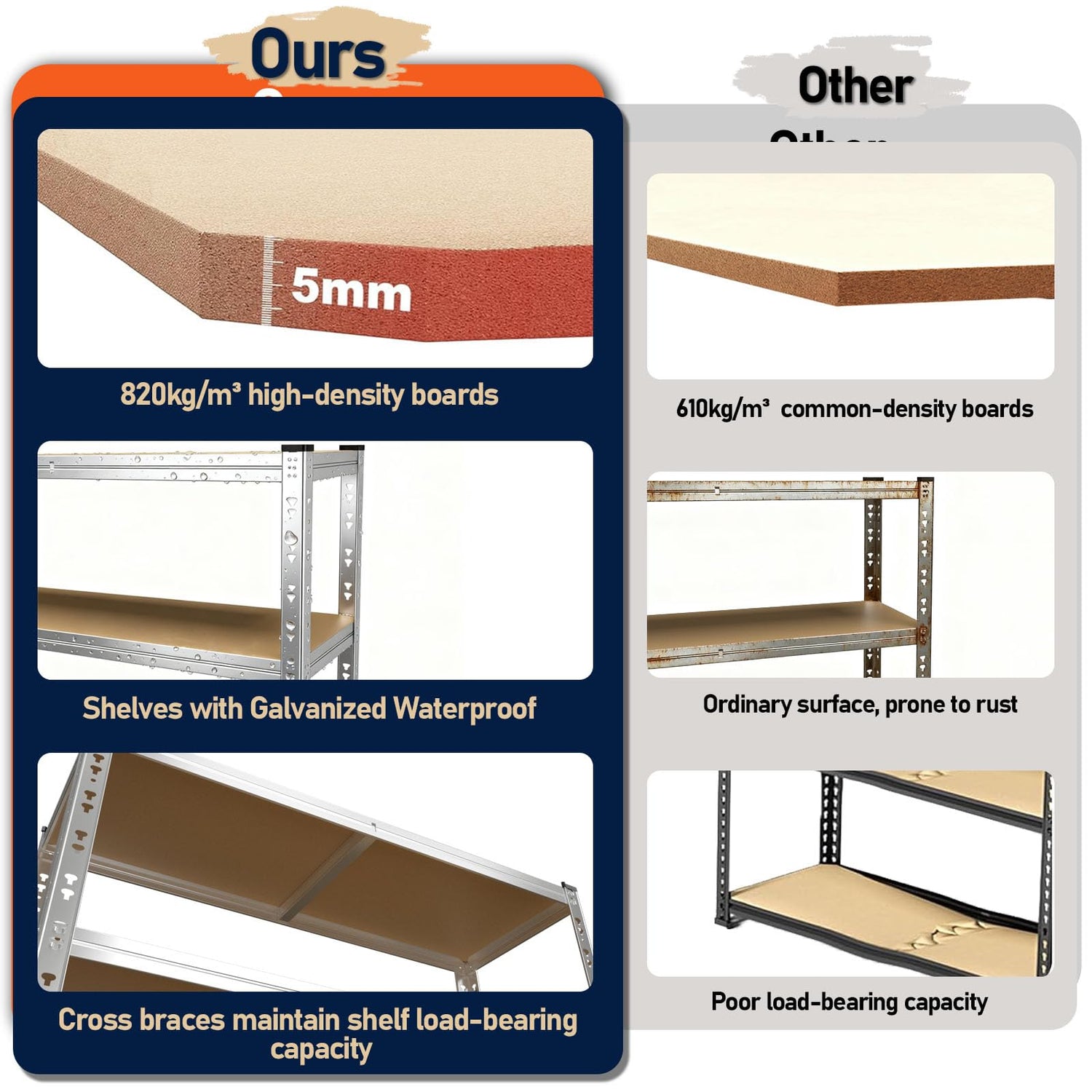- 【820kg/m ³ High-density Board】 Shelf organizers use 820kg/m ³ high-density board, which has better load-bearing capacity and is less prone to warping or sinking. (Note: MDF board is not waterproof)