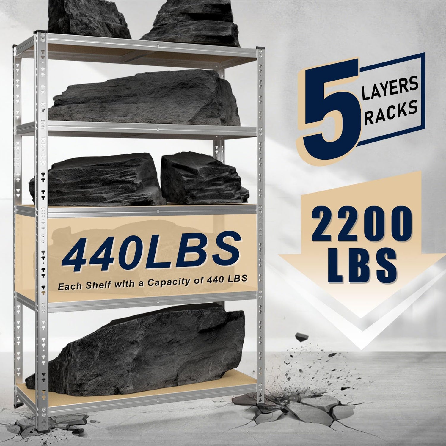 - 【2200lbs Load Capacity】 Heavy duty shelters have a total load capacity of 2200 pounds, with each layer carrying 440 pounds. It can stably carry garage tools, supermarket products, and kitchen appliances.