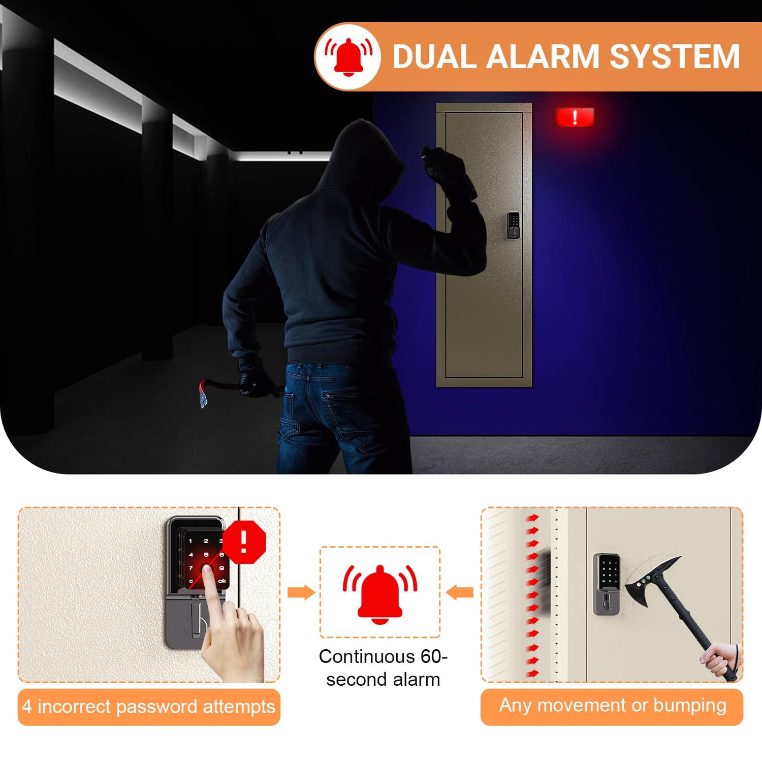 • 【Anti-Theft Design】Constructed with cold-rolled steel, this gun safe is robust enough to withstand violent vandalism. Adapt a specially designed clutch knob to prevent violent twist lock. Four incorrect password attempts or any movement or impact will trigger a continuous 60-second alarm.