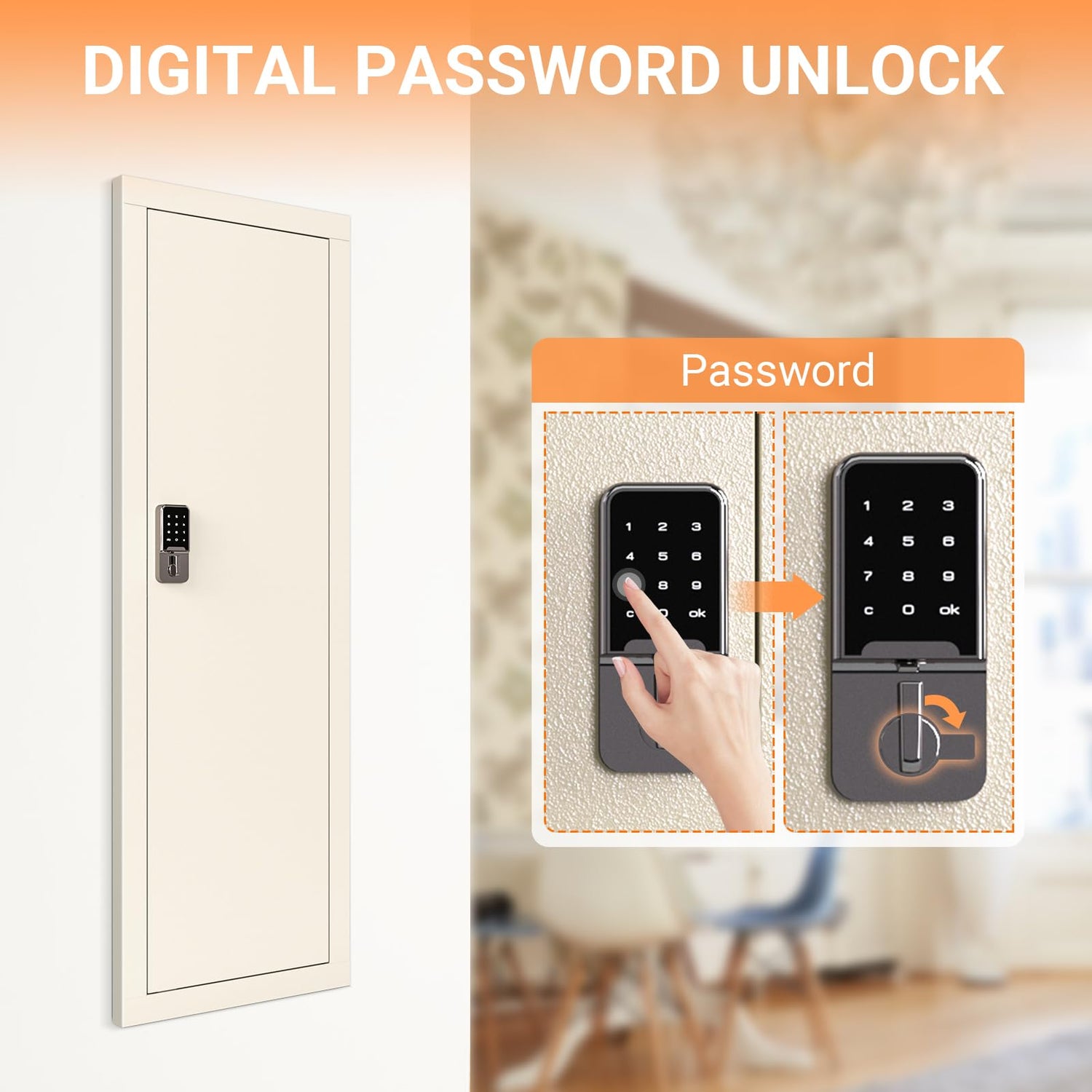 Zevemomo 53'' Tall Wall Safe, Gun Cabinets for Rifles and Shotguns with 2 Removable Shelves and Adjustable Gun Rack, in Wall Gun Safe between Studs for Gun, Money, Beige