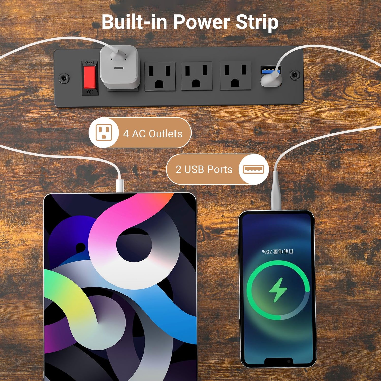 - 【Built-in Power Strip Function】Our TV entertainment centre has built-in hidden plugs, including 4 AC sockets & 2 USB ports, allowing you to connect multiple devices, such as your TV and stereo. There is no need for extra extension cords to keep your living room tidy and organised.