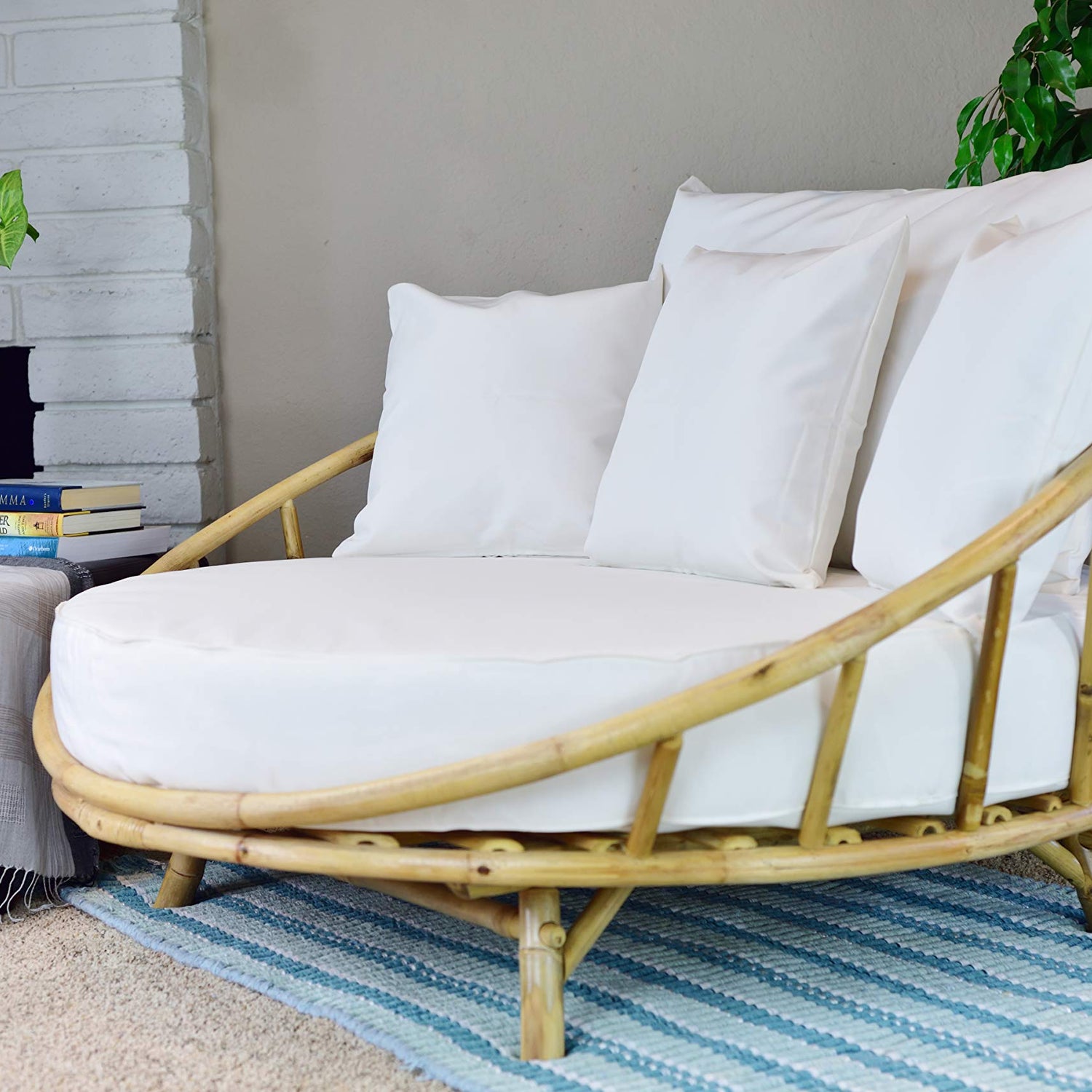Details: >>> About Product: Large round bamboo accent sofa daybed with modern design look. Handcrafted in round shape for extreme comfort and fun. Thick cushions for cozy relaxation. This sofa is the one that perfectly matches with both INDOOR and OUTDOOR setup and providing an intimacy and comfy feelings to you and your beloved one.
