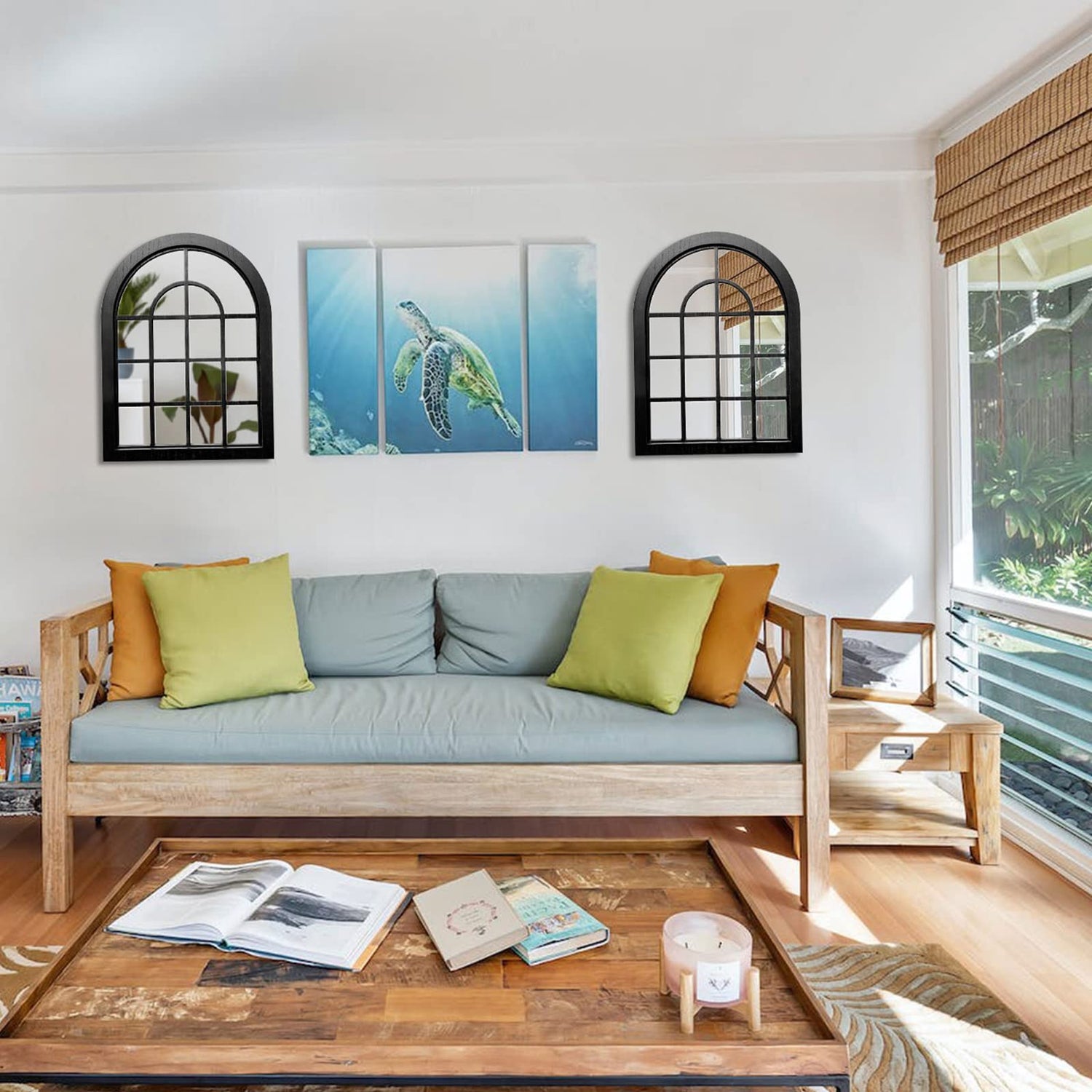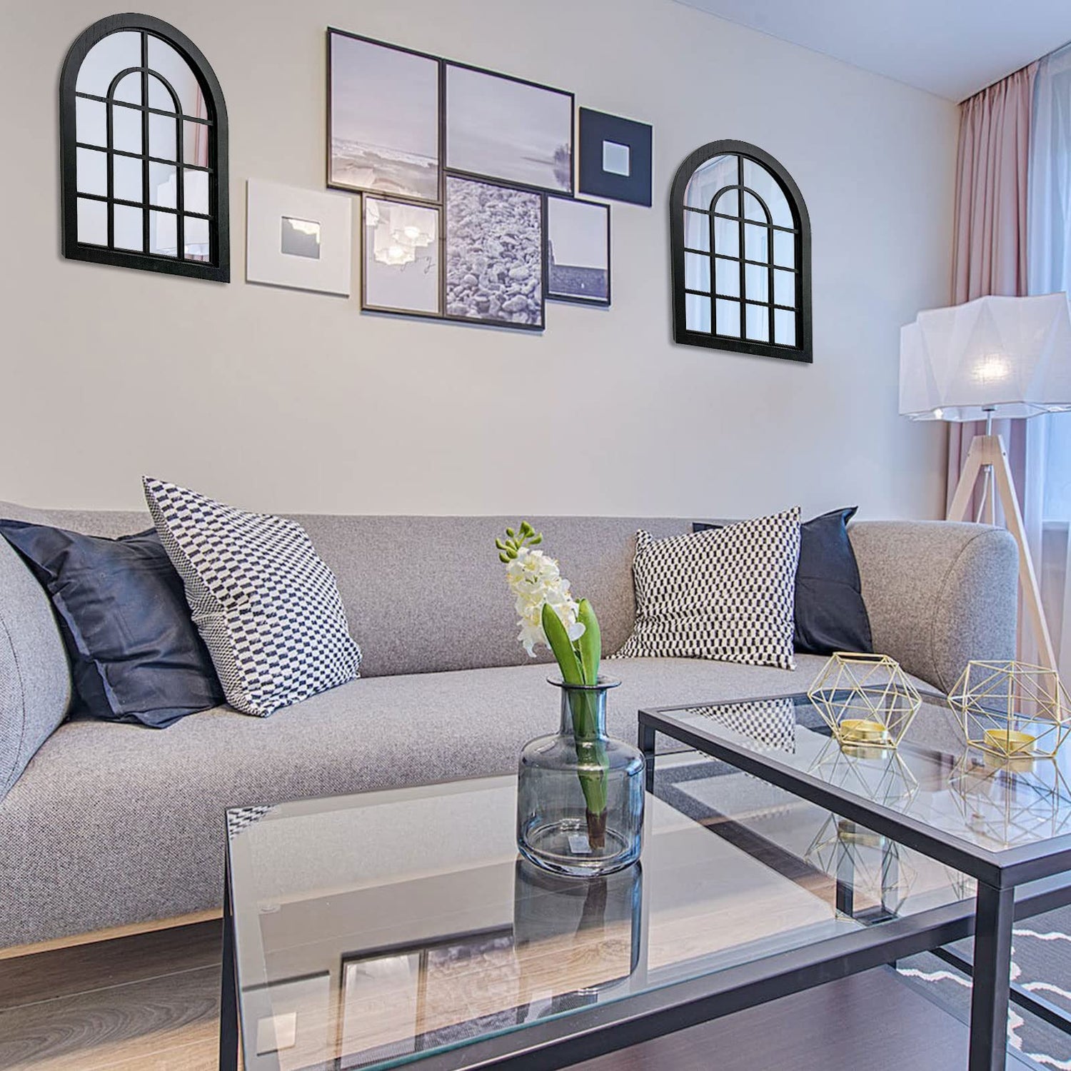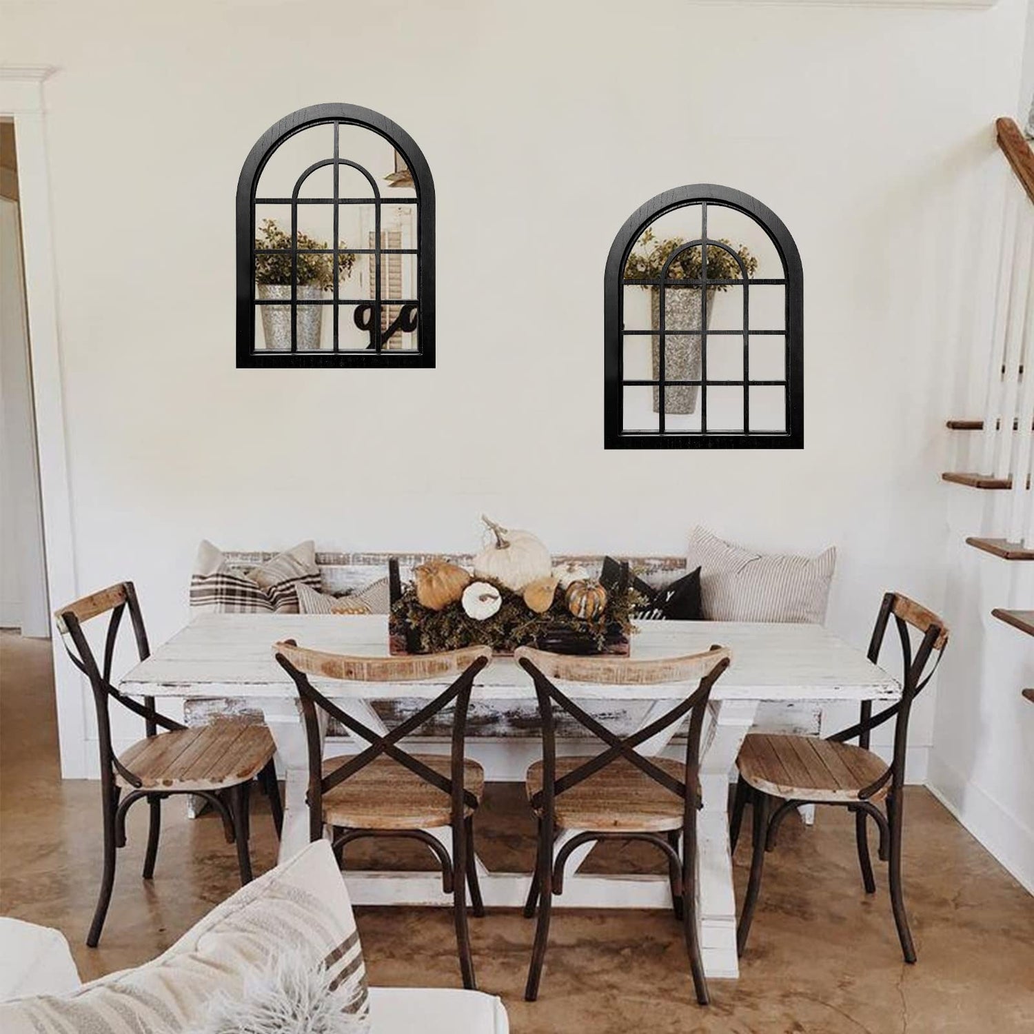 - 【RUSTIC ARCH WINDOW HOME WALL DECOR】 This arch top wall mirror set is handmade with high quality MDF wooden frame and exquisite wood carving craft. The mirror inside makes the product more chic than shabby, which makes it an very impressive home décor.