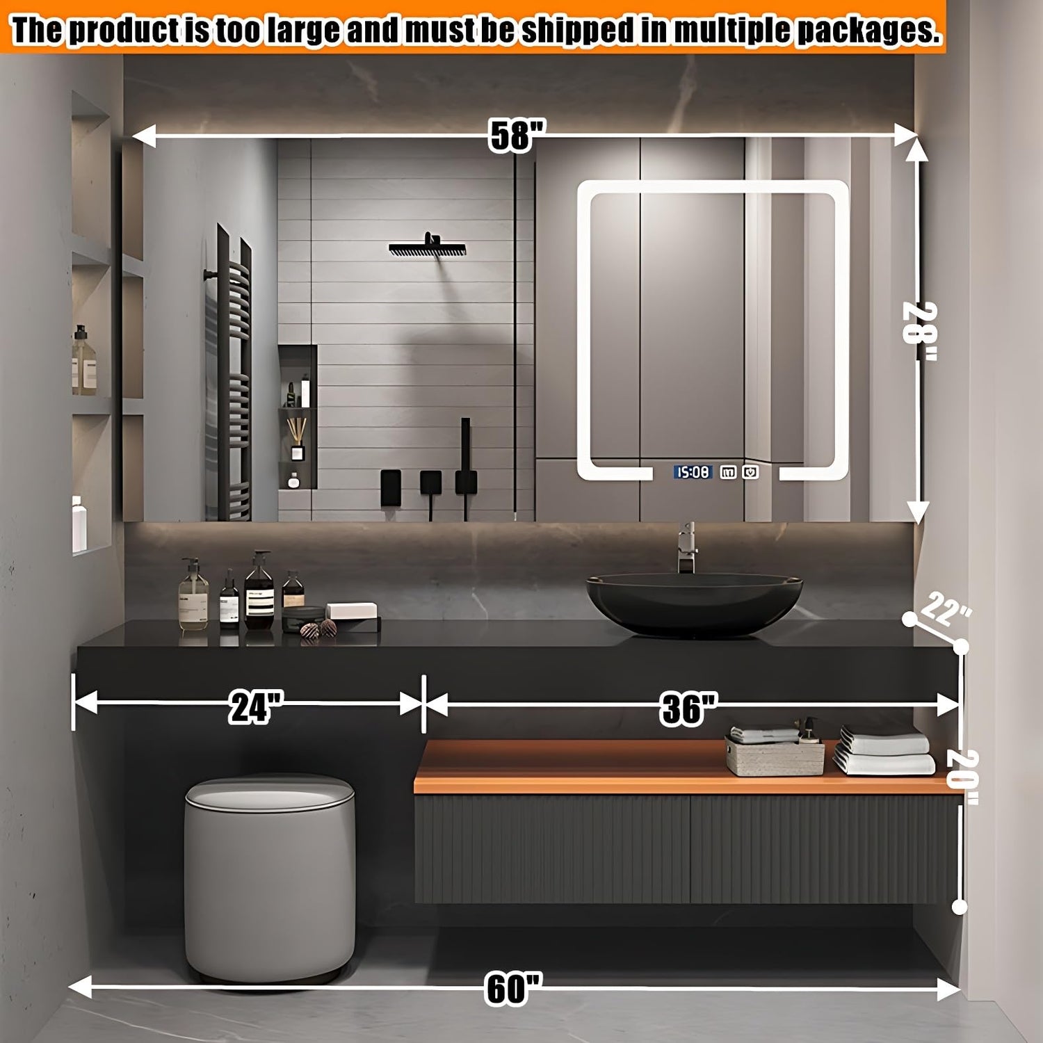 - Intelligent experience: The top of the bathroom vanity is equipped with an intelligent defogging medicine cabinet, creating a more intelligent use experience. Advanced electric heating defogging technology allows you to enjoy clear reflections immediately after bathing, while well-designed storage cabinets provide you with convenient storage space, making every application of makeup a pleasure.