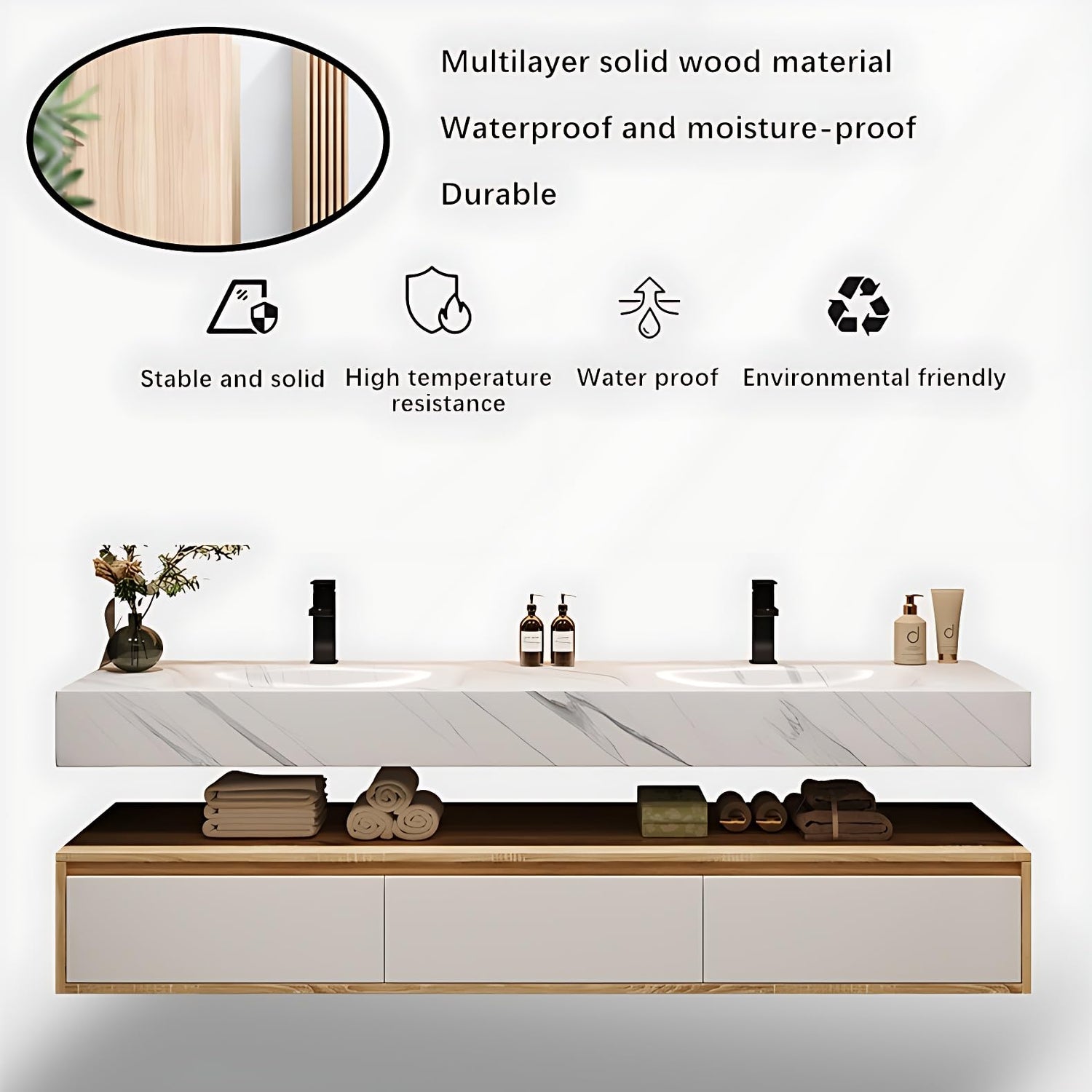 - Integrated Sink Design: This bathroom vanity offers two options: double sink and single sink, which significantly improves practicality. The sink is made of high-quality marble in one piece, without any gaps, avoiding sanitary dead corners, delicate touch, and easy to clean, providing you with an excellent use experience.