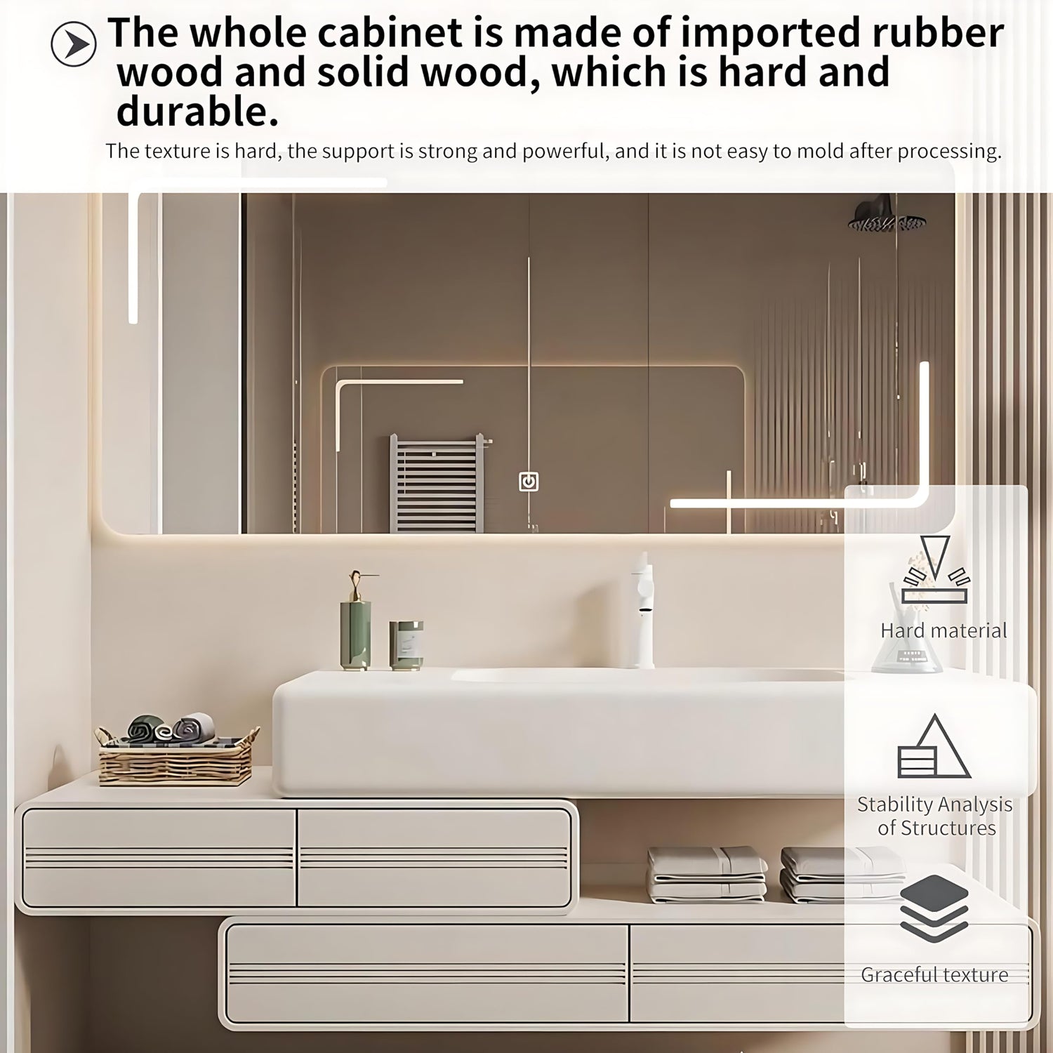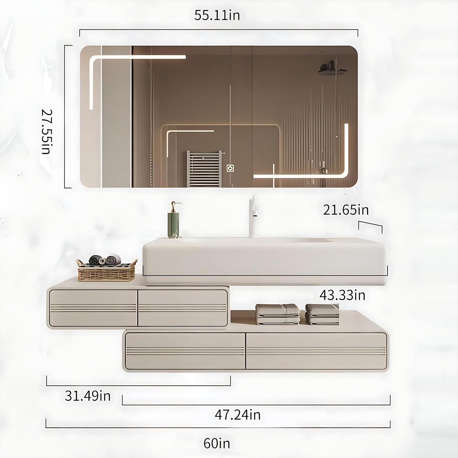 ZGNBSD Bathroom Vanity with Sink - Modern Bathroom Sink Cabinet Set, Equipped with LED Smart Defogger Mirror, Stylish Floating Vanity Bathroom, Gift for Wife and Daughter (60")
