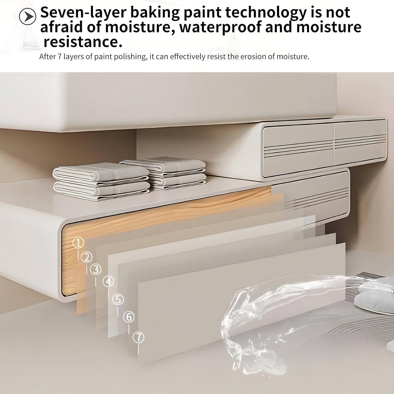 - In order to meet the diverse needs of bathroom storage, our floating vanity is designed with spacious storage space and adopts clever partitioning design to maximize the use of every inch of space. Easily store them in categories, keeping your toiletries organized and ready for use.