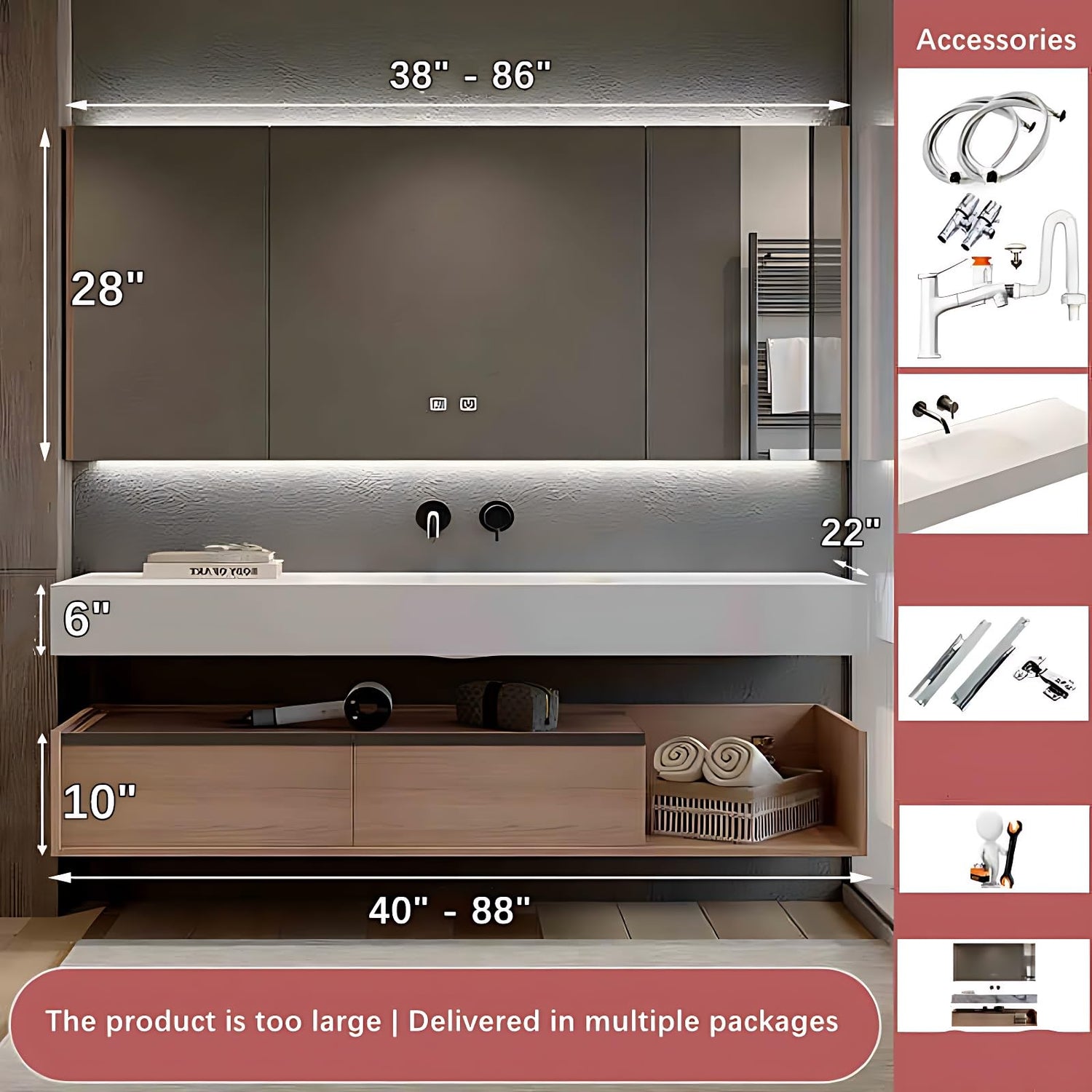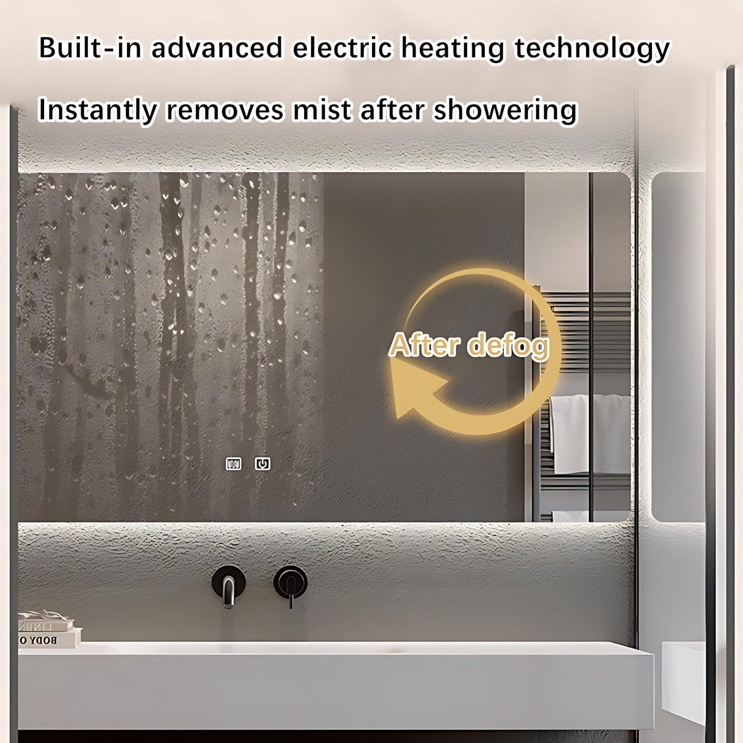 - Smart Defog Technology: The upper mirror cabinet equipped with an LED smart defog system can quickly remove water vapor from the mirror surface, ensuring a clear mirror view every time you use it. Whether it is skin care, makeup or shaving, you will experience unparalleled convenience and comfort.