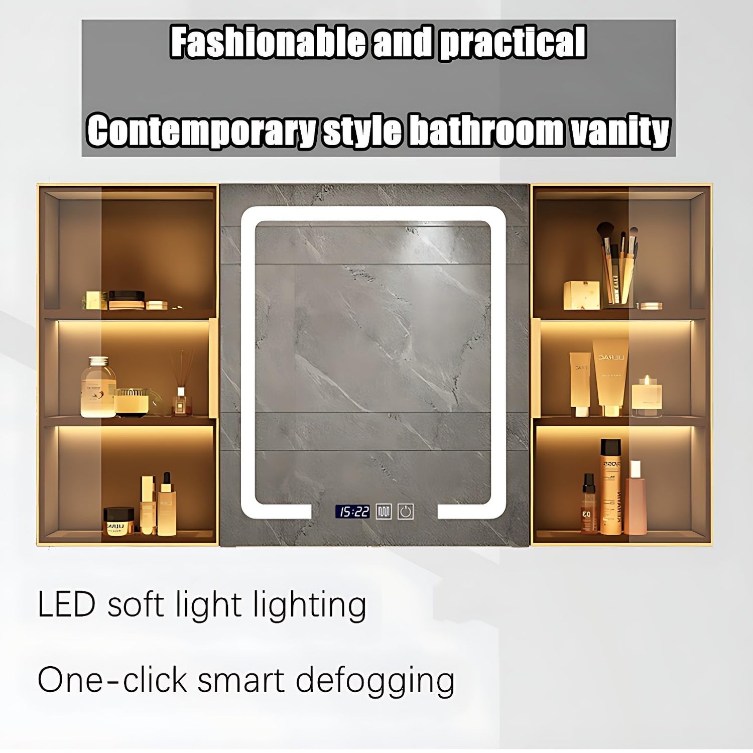 ZGNBSD Double Bathroom Vanity with Sink - Floating Bathroom Vanity Contains Smart Defog Mirror Cabinet, Solid Wood Bathroom Vanity with Drawer, Wall Mounted (Double Sink 60")