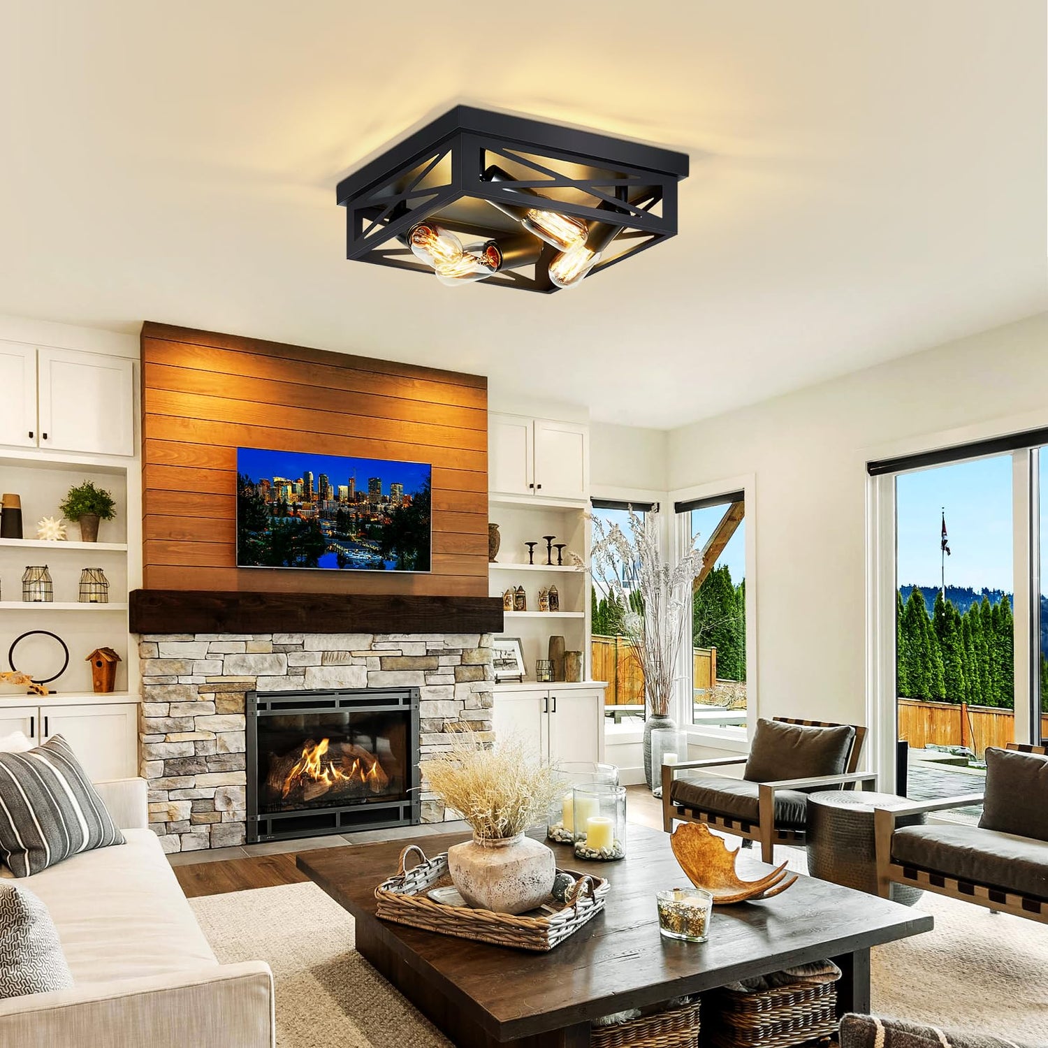 - 【Upgraded 4-Light Ceiling Light】The flush mount light fixture with a solid, open cage frame (no glass lampshade),create the atmosphere and effect you want,and the newly upgraded 4-head size meets all your room lighting needs.