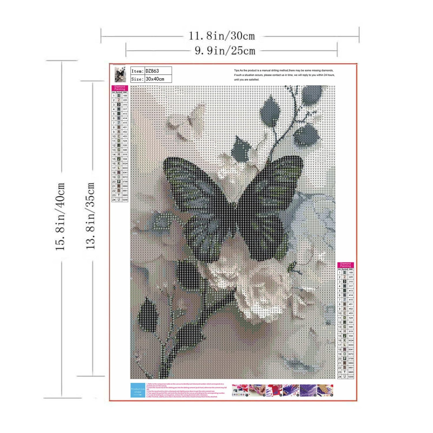ZHUDENGXJL Butterfly Flower Diamond Art Kits for Adults,5D Full Round Drill Diamond Painting Kits for Beginners,DIY Diamond Dots Paintings Picture Arts Craft for Adults,Home Wall Decor 12 X 16Inch