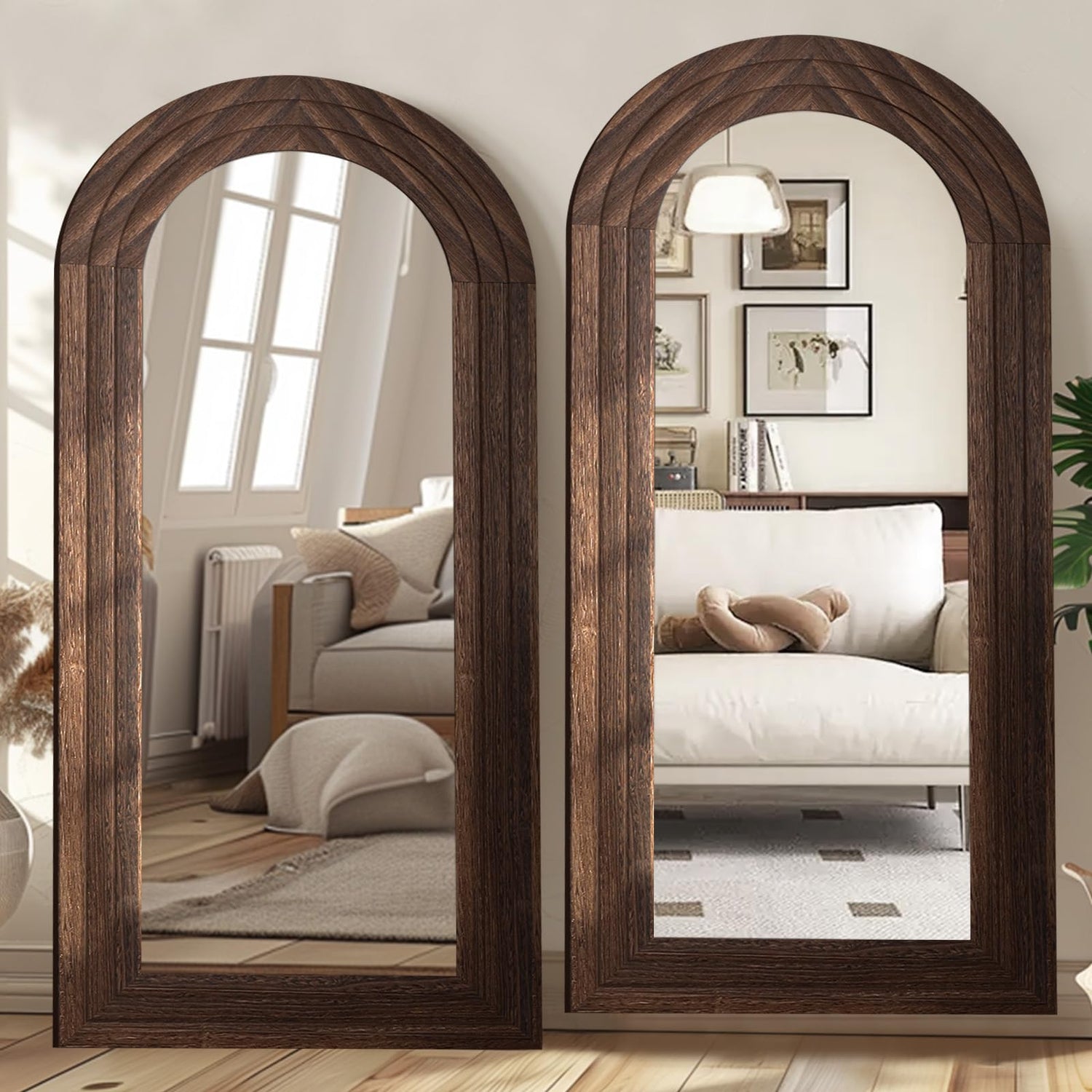 - RUSTIC WOOD FUll LENGTH MIRROR: Transform your house into a charming rustic haven with our Farmhouse Arched Full Length Mirror. Crafted from high-quality natural solid wood, this mirror is durable and long-lasting. Its stylish arched wood frame adds an air of sophistication, while the intricate farmhouse-style detailing complements any decor. With its beautiful and timeless design, this versatile mirror is the perfect addition to any room in your home