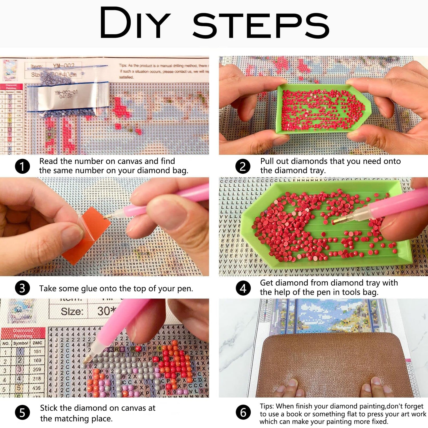- [High-Quality Materials] Diamond art kits features Environmental Adhesive and Eco-FRIENDLY Canvas.High clear printing oil canvas arewaterproof,damp-proof and wrinkle-free and has even texture, the pattern itself has a sticky background and plastic overtop to keep the picture sticky and then the gems will hold, so that you are easy to complete the picture.