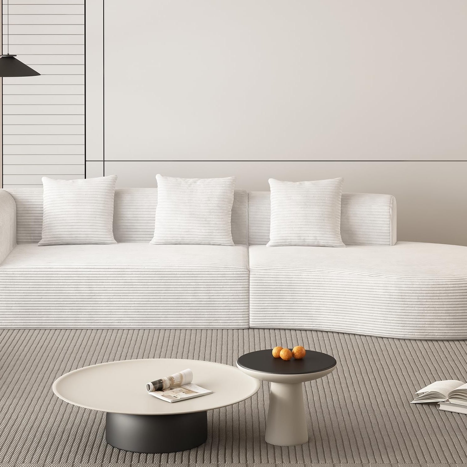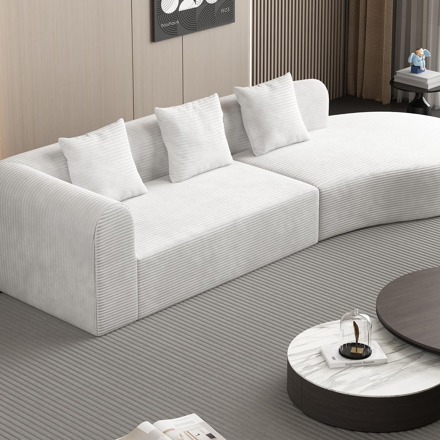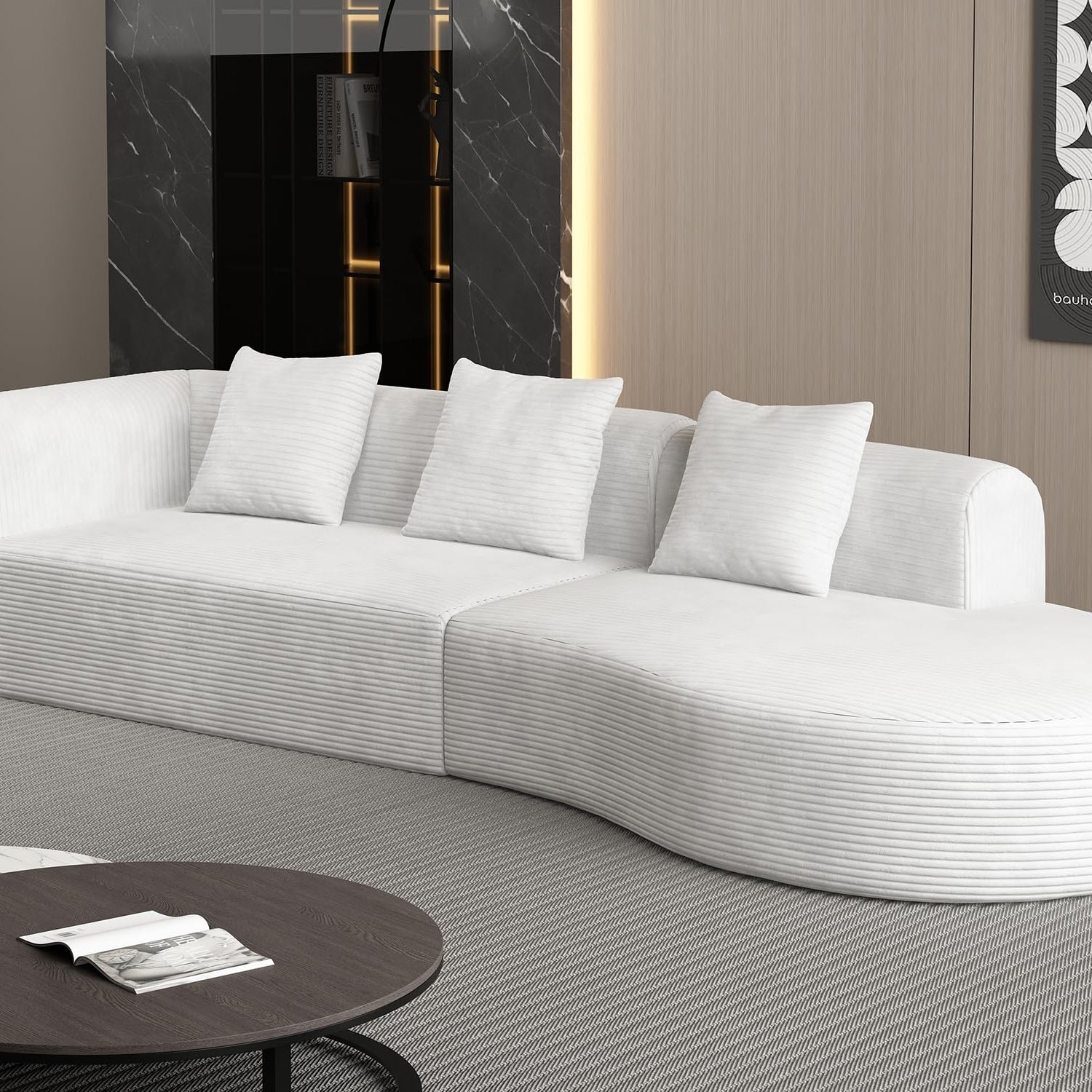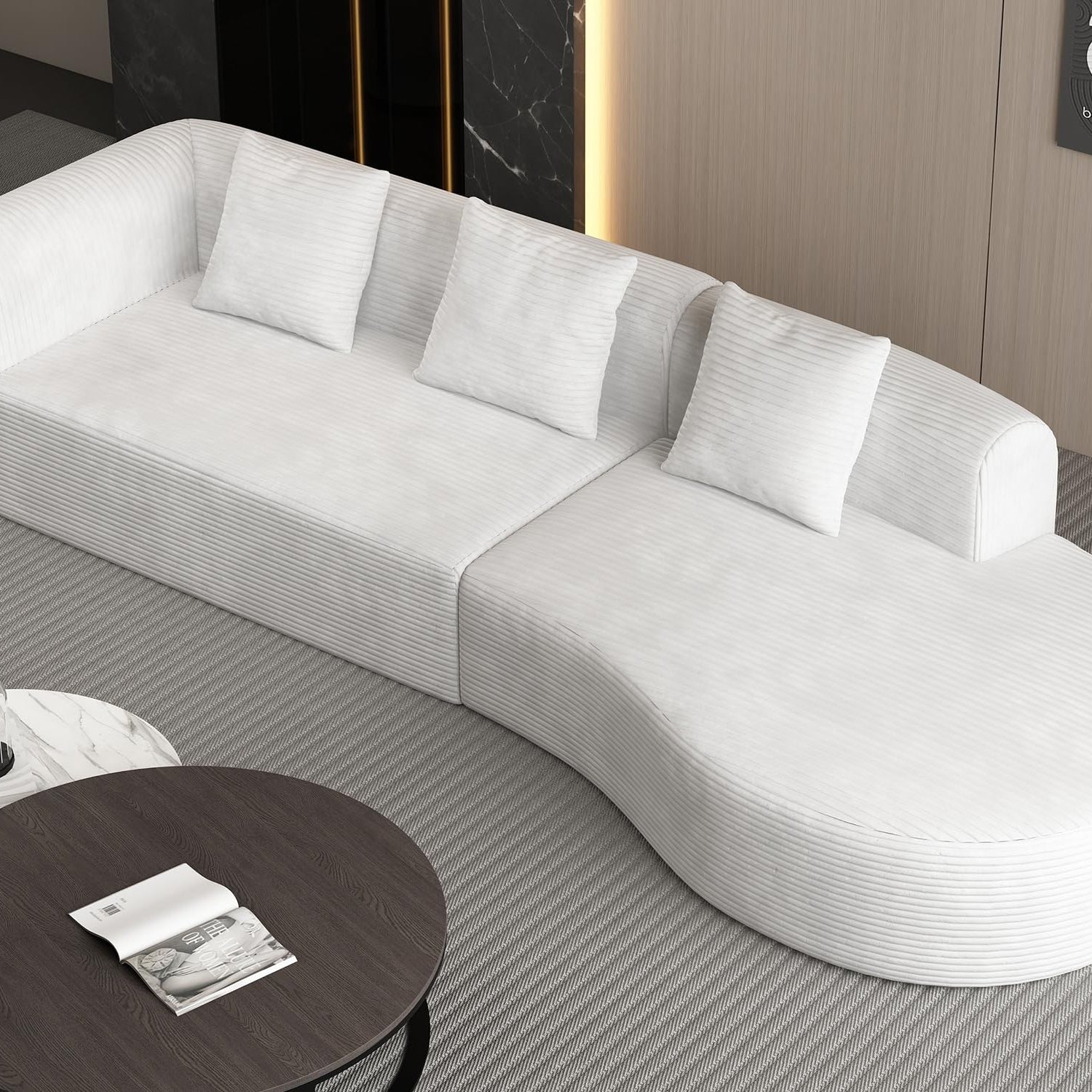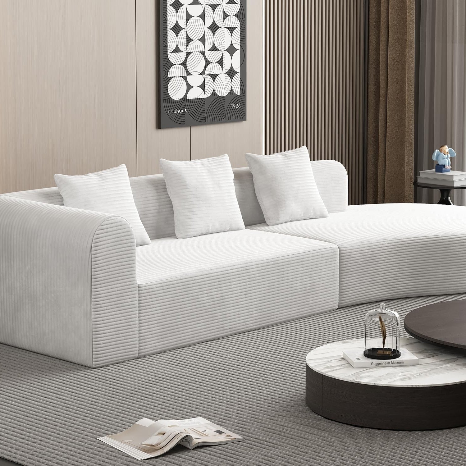 ZIGHTH 123'' Corduroy Cloud Compression Couch Sectional Sofa with Deep Seat, Comfy Plush Sectional Sofa Couch for Living Room, L Shaped Cloud Sectional Sofa Couch, No Assembly Required. White