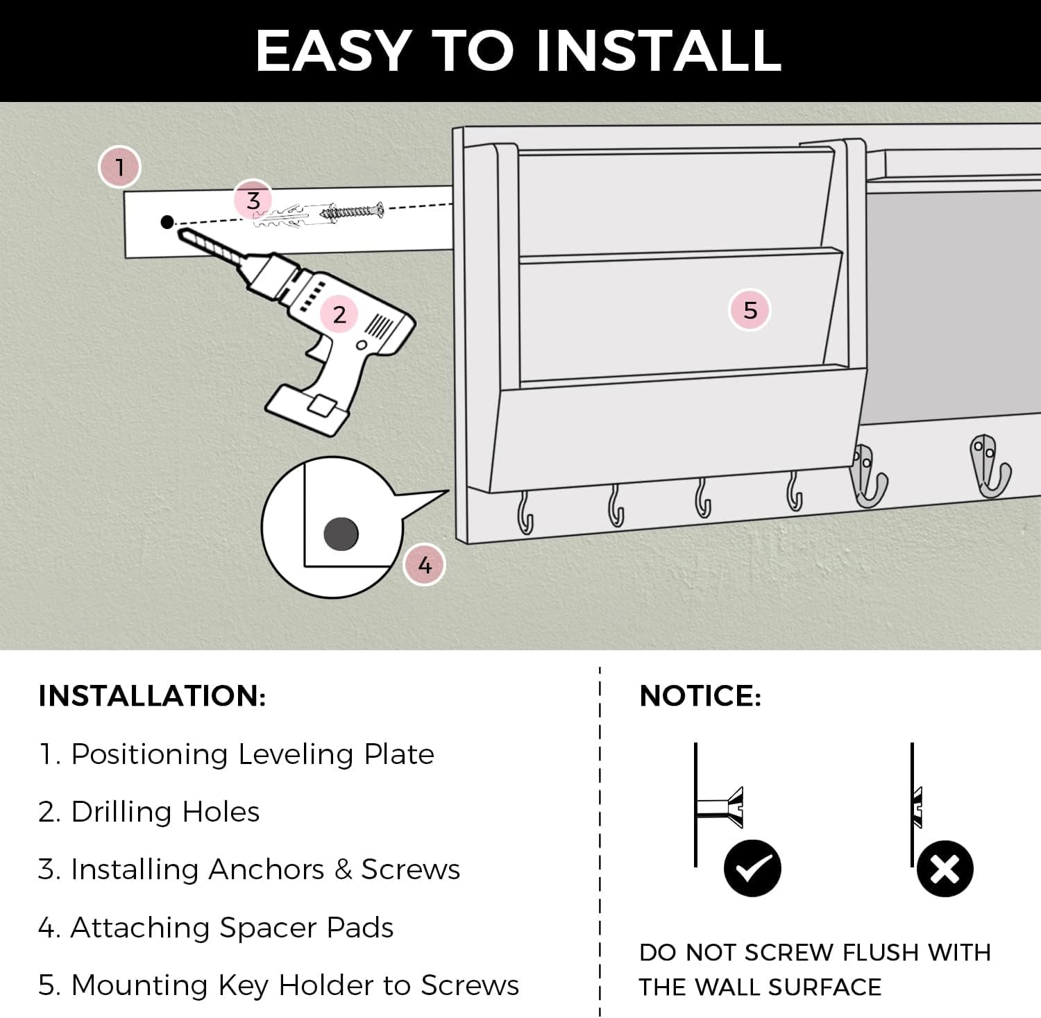 - Easy To Install and Clean - All needed mounting hardware and step-by-step instruction are included. You can easily install this wall key mail holder in 10 mins. Our mail key storage is very easy to clean with a soft damp cloth.