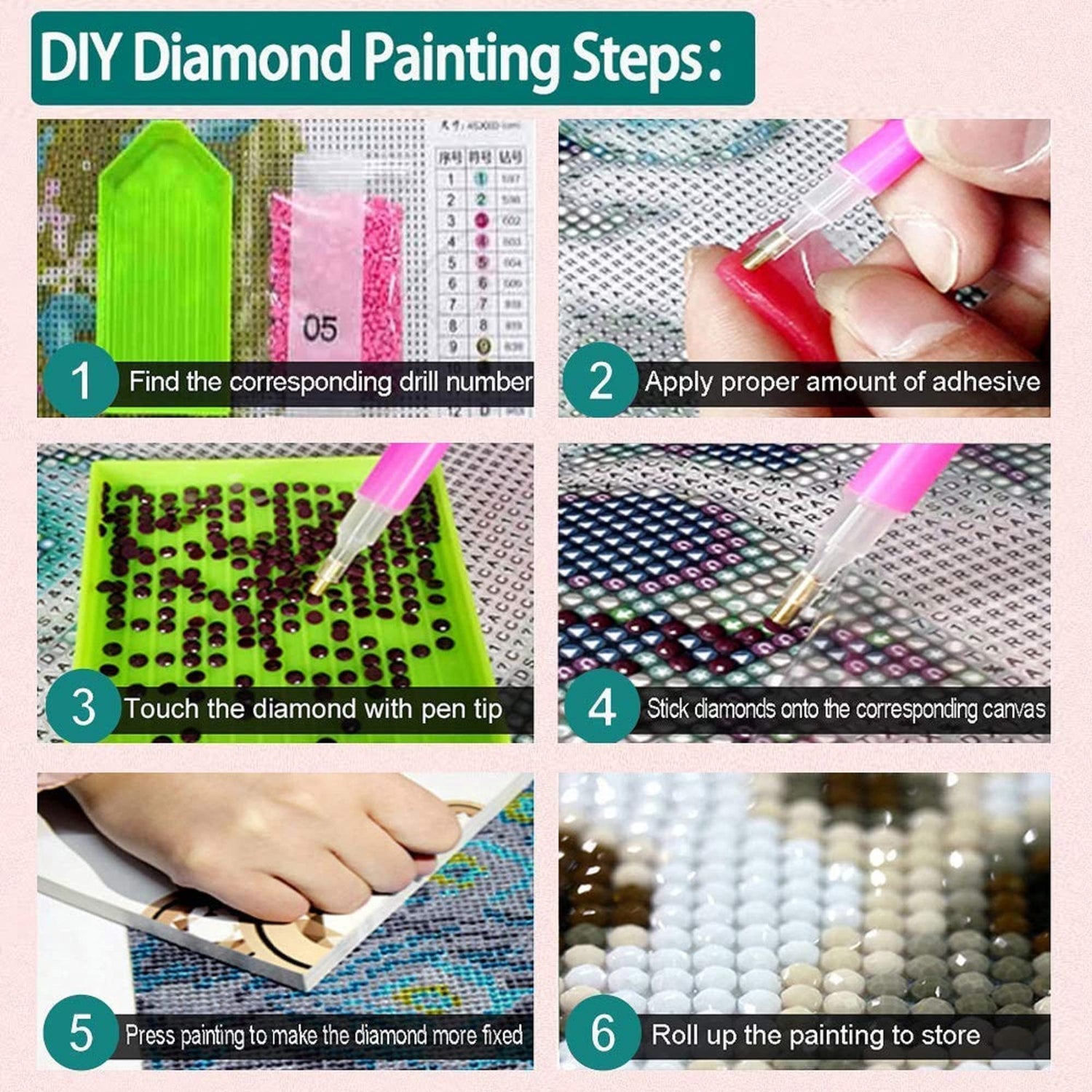 - 100% full-round drill 5d diamond painting kit: This kit includes everything you need to complete your diamond painting project, including diamonds, canvas, adhesive,diamond applicator pen and plastic tray.