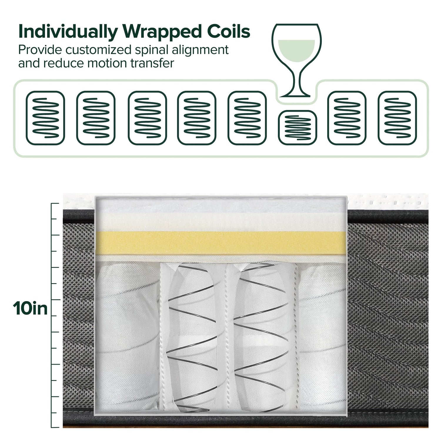 - CUSTOM COMFORT – Individually wrapped coils topped with conforming layers of not-too-soft comfort foam provide motion isolation and the perfect level of pressure relief for you as you rest