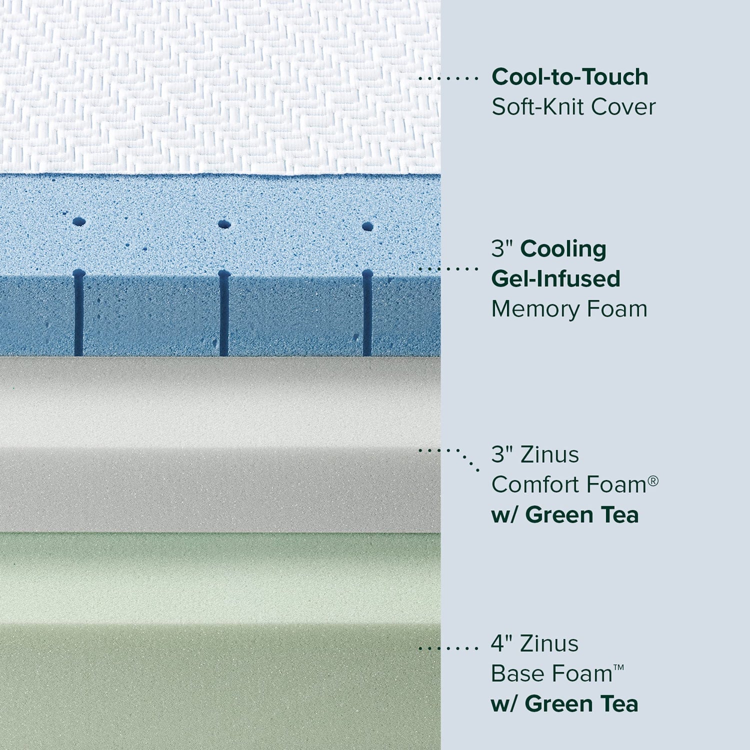 - REFRESHING SLEEP – We infused premium green tea into every layer for improved freshness from the first night to the hundredth