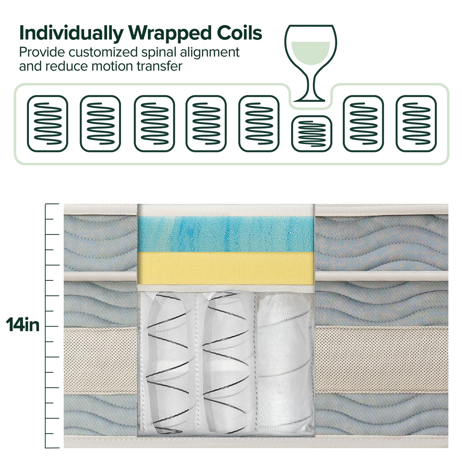 - CUSTOMIZED COMFORT – Individually wrapped coils respond independently to your movements to provide customized spinal alignment and help reduce disturbances from a restless partner