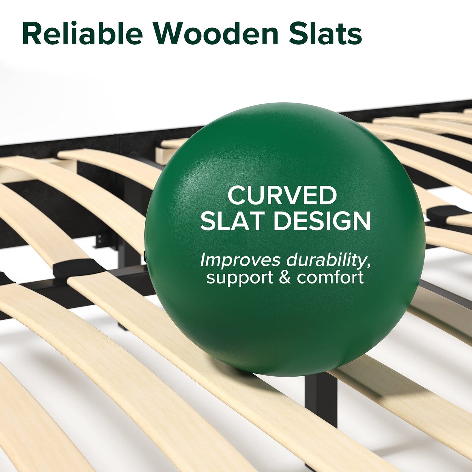 - NO BOX SPRING NEEDED - Durable wood slats support and extend the life of your latex, memory foam or spring mattress without the need for a box spring; for the twin and full sizes, slats are spaced 2.8 - 3.3 inches apart