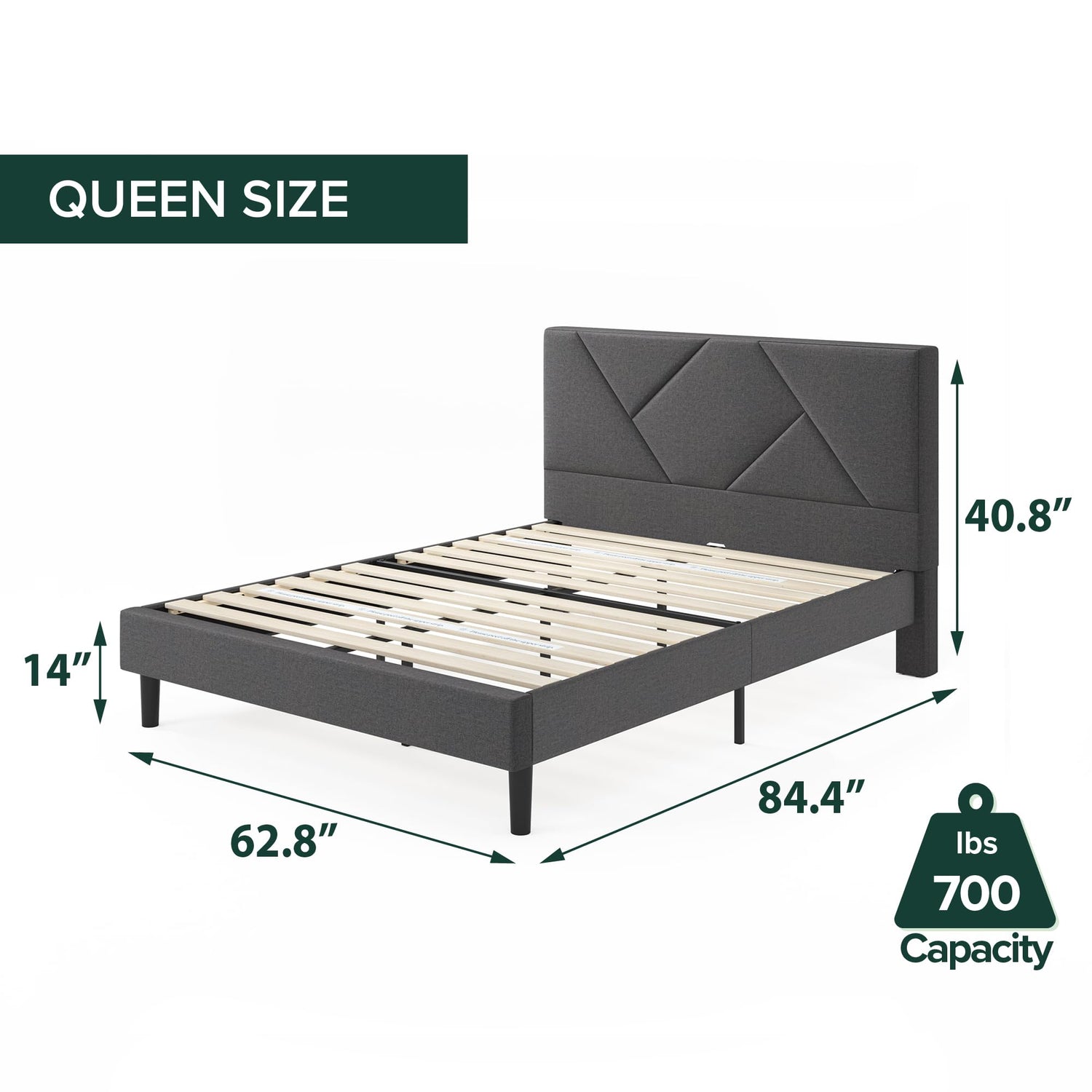 ZINUS Judy Upholstered Platform Bed Frame, Mattress Foundation, Wood Slat Support, No Box Spring Needed, Eco Friendly WonderBox (TM), Easy Assembly, Dark Grey, Queen
