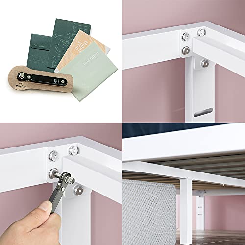 Zinus Mia Metal Platform Bed Frame - Twin Size, Wood Slat Support, Easy Assembly, White