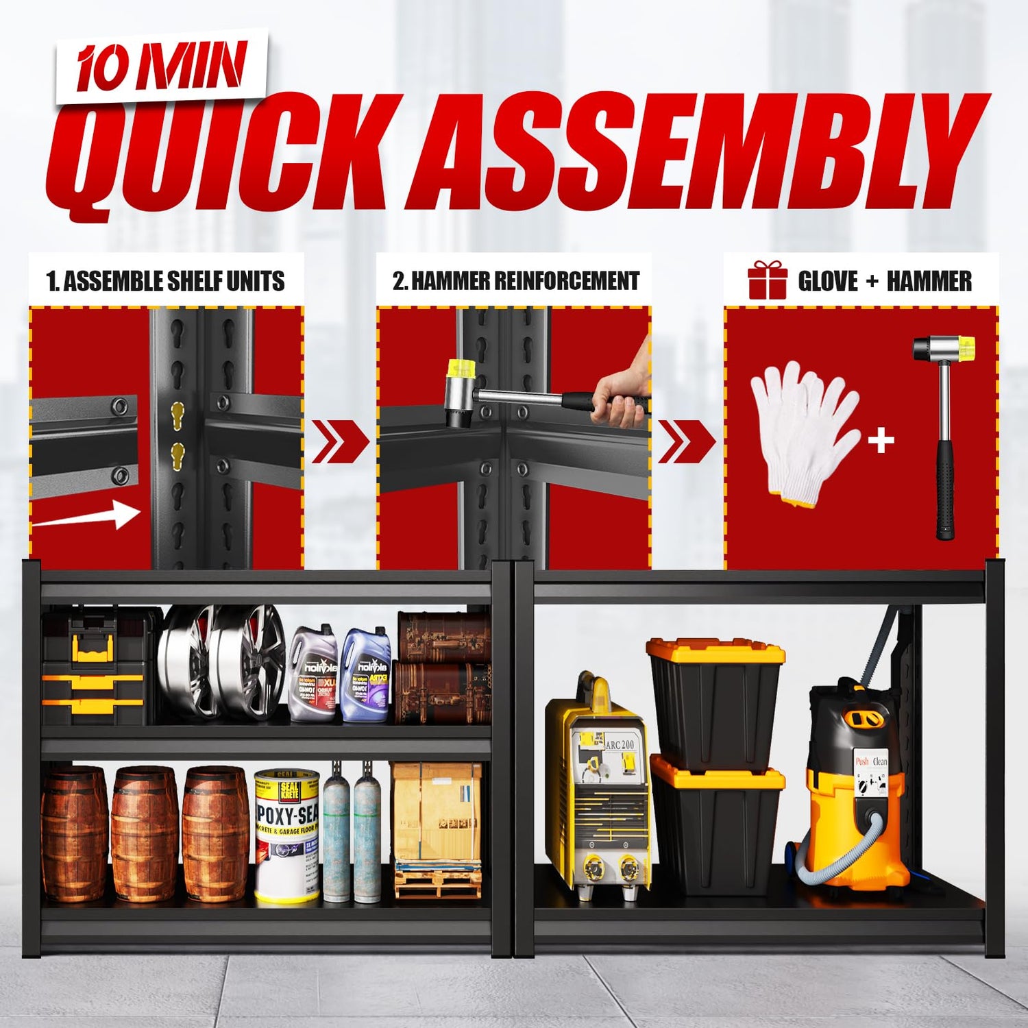 • 【Easy Assembly】Forget complicated setup—this garage shelving is designed for hassle-free assembly. It comes with a detailed illustrated manual and all necessary hardware, so even beginners can put together this shelving unit in no time. Unlike flimsy storage shelf options, this garage shelving uses snap-on connections to secure parts tightly, ensuring your garage shelves stay sturdy once built. Whether you’re replacing old metal shelving or adding new garage storage shelves, assembling this garage shelving is quick and stress-free.
