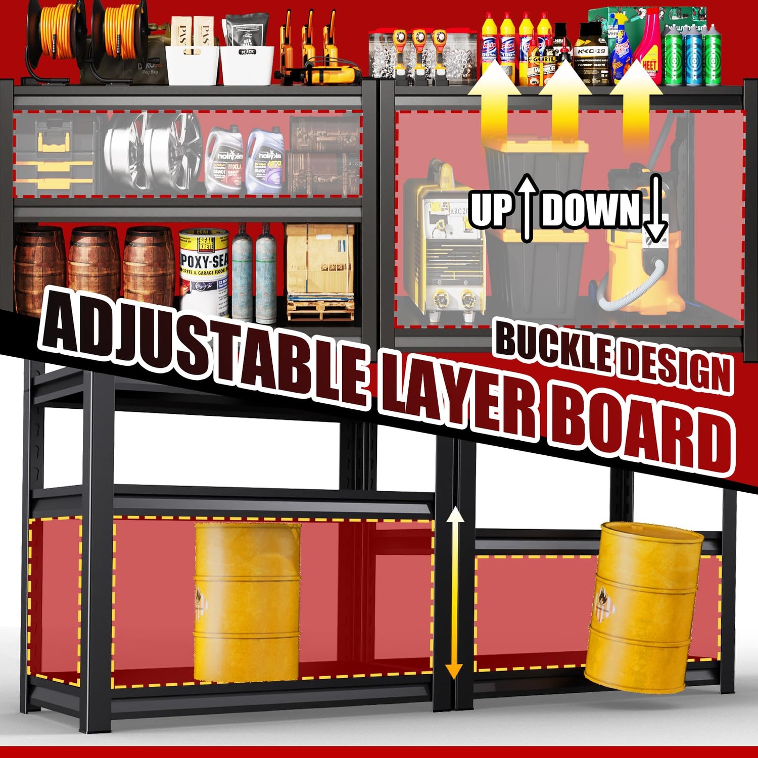 • 【Adjustable Shelves】Customize your storage with this garage shelving’s adjustable shelves—perfect for adapting to different-sized items in your garage. Whether you need to fit tall tools, small containers, or bulky boxes, the flexible shelves of this garage shelving let you optimize space like no basic storage shelf can. As a versatile shelving unit, it works seamlessly with other garage storage shelves or stands alone, proving that garage shelving doesn’t have to be one-size-fits-all.