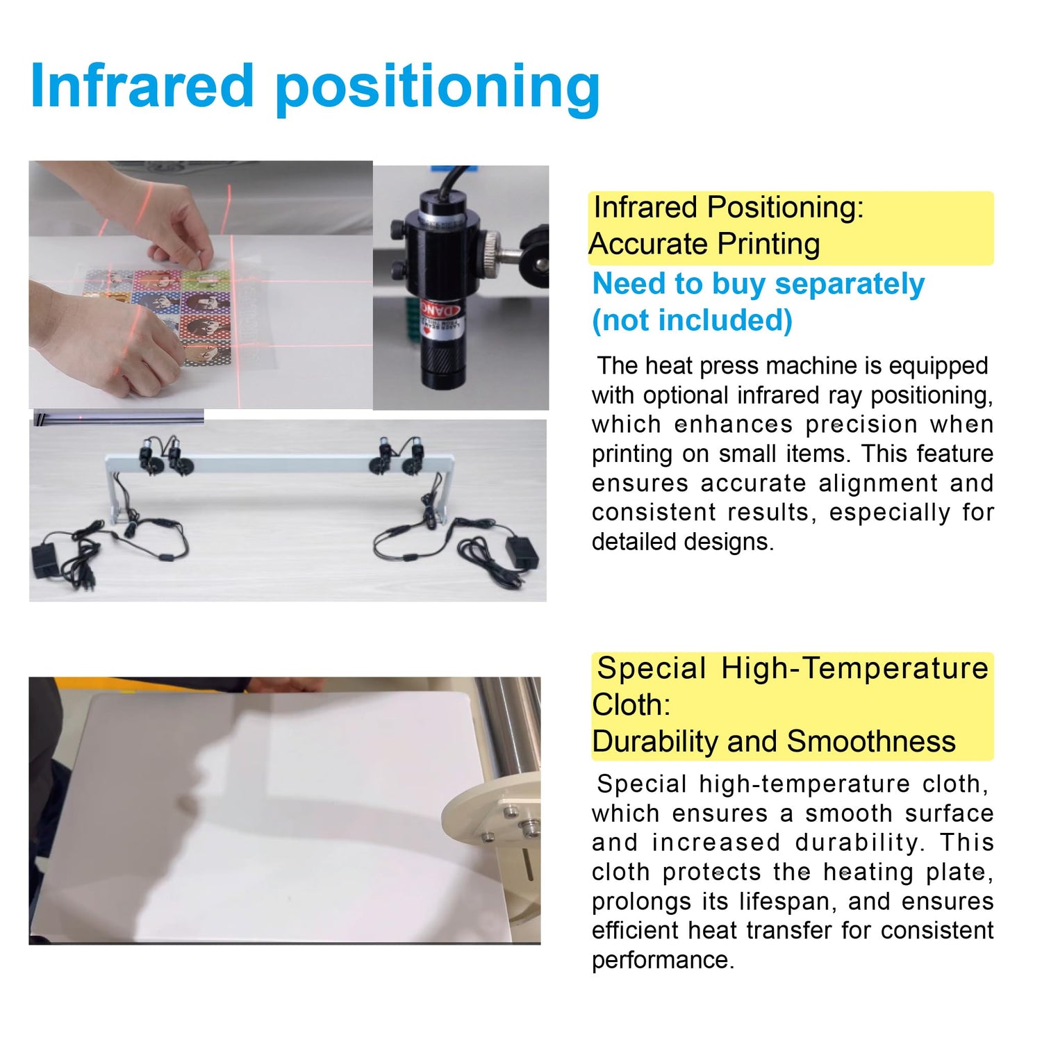- 9. Heat press machine with optional Infrared positioning makes more sccurate for small items printing