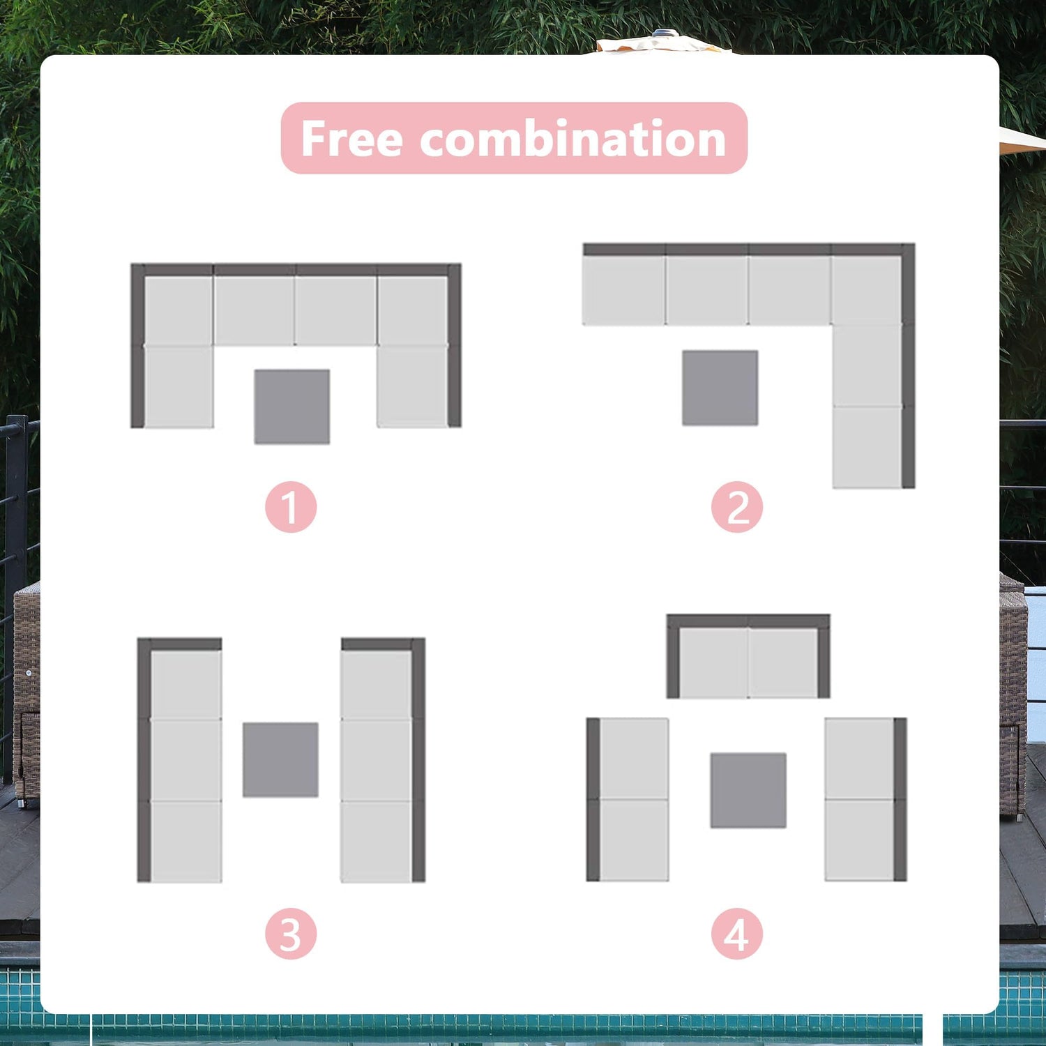 - Durable All-Weather Material Crafted with hand-woven brown PE rattan and a strong steel frame, this sectional conversation sofa is highly durable to withstand rain, wind, and long-term outdoor use