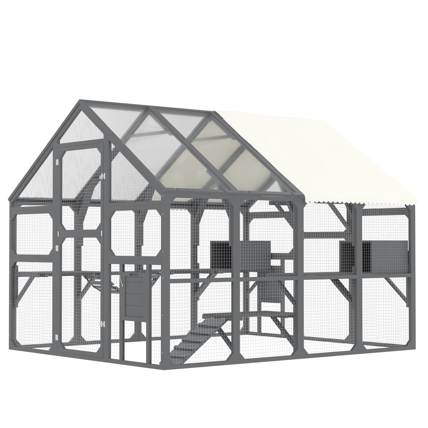 - Extra Large Cat House: Cat cage measures 96.1" x 74.2" x 74.4". Provides a spacious, versatile activity center for multiple cats to play, stretch, rest and relax.