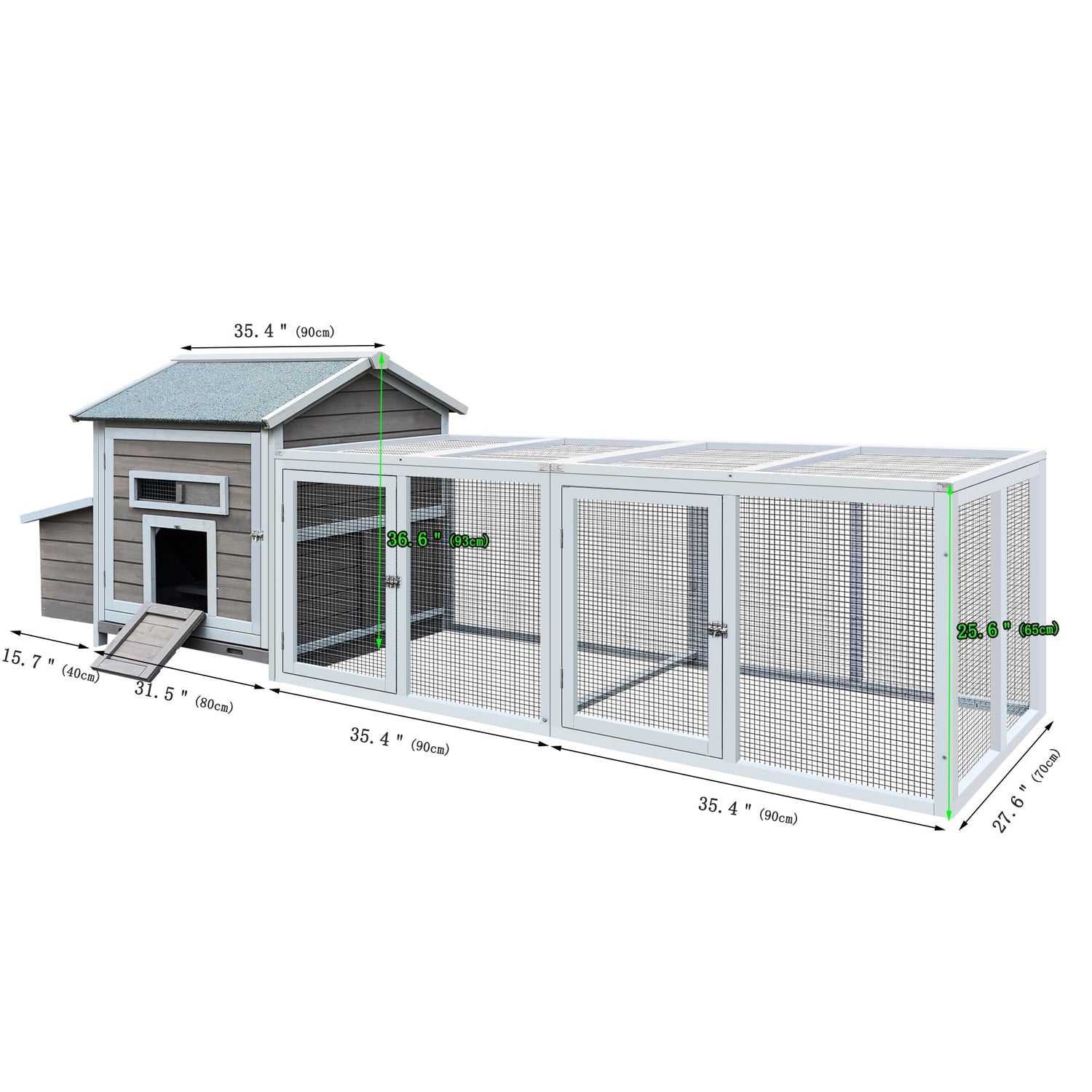 ZMAD Large Chicken Coop Outdoor,Chicken Coop 6-8 Chickens,Chicken Nesting Box, Pull Out Trays and Anti-Slip Asphalt Ramp (Gray, 118)